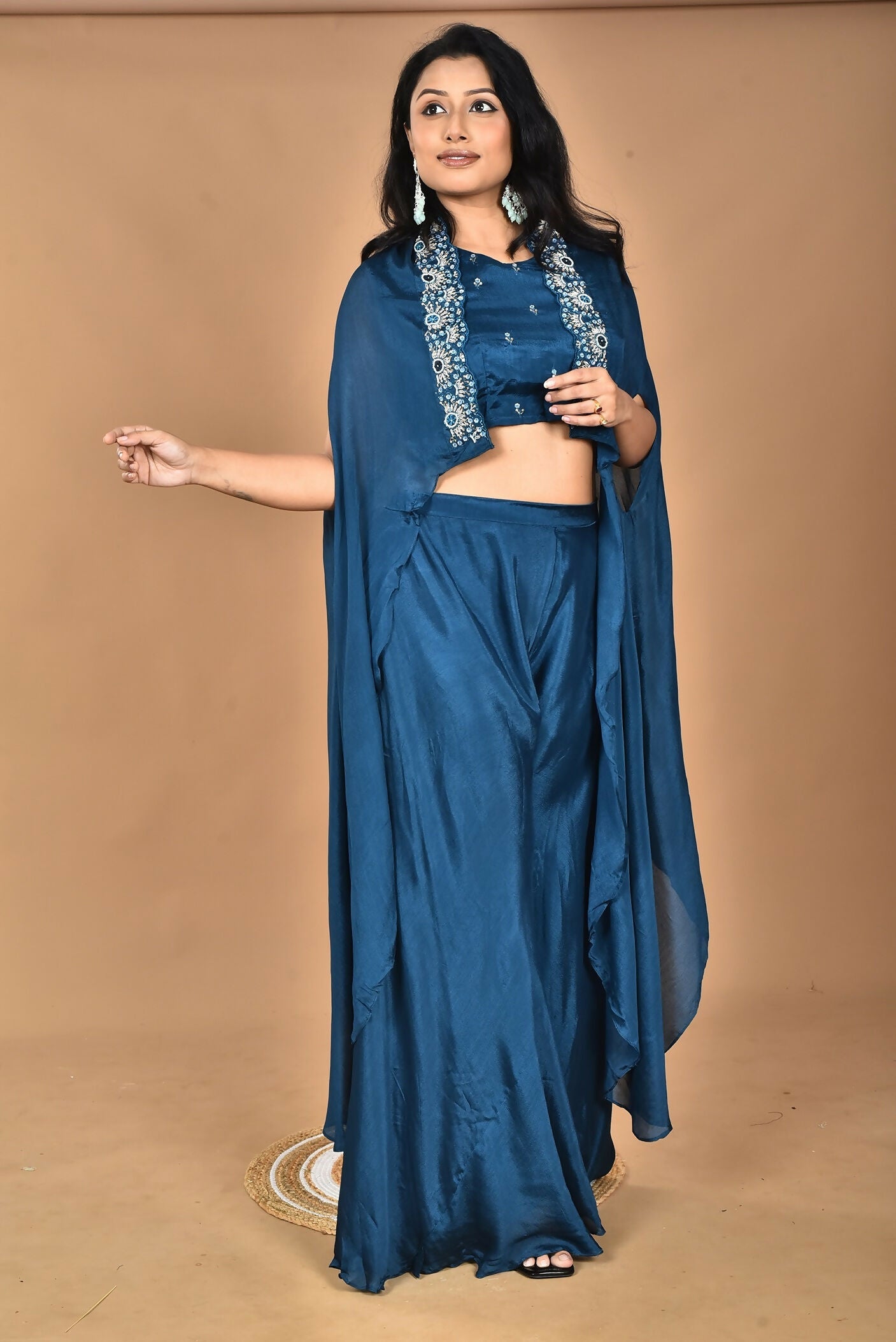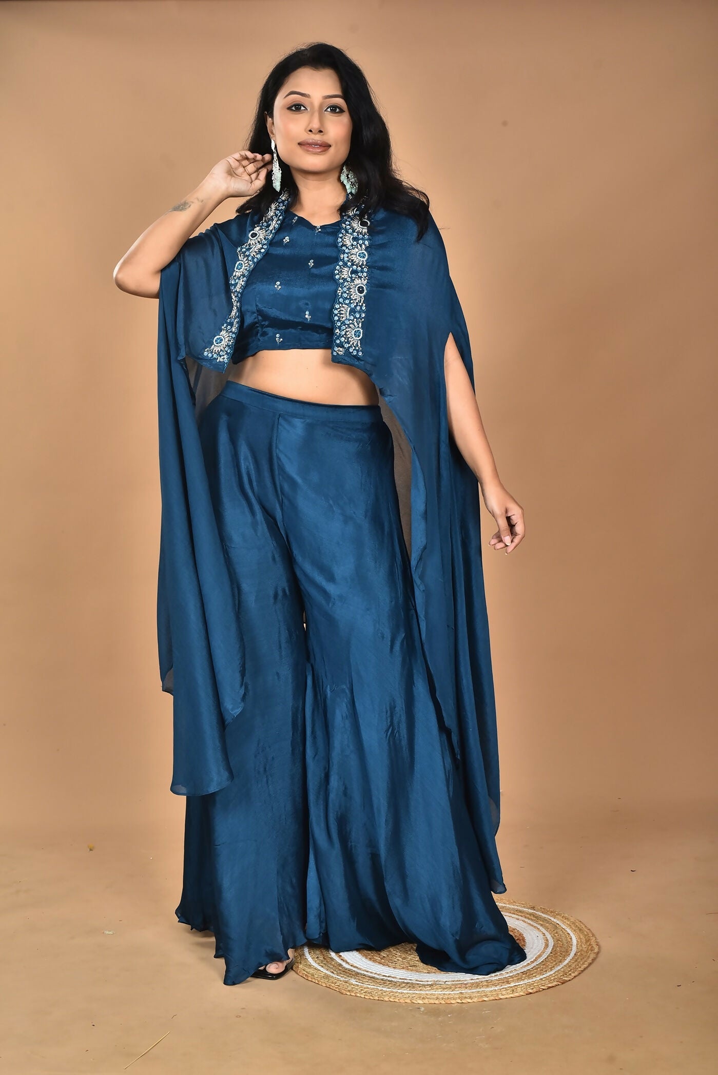 Morchari Women And Hand Embroidery Palazzo Set-Blue