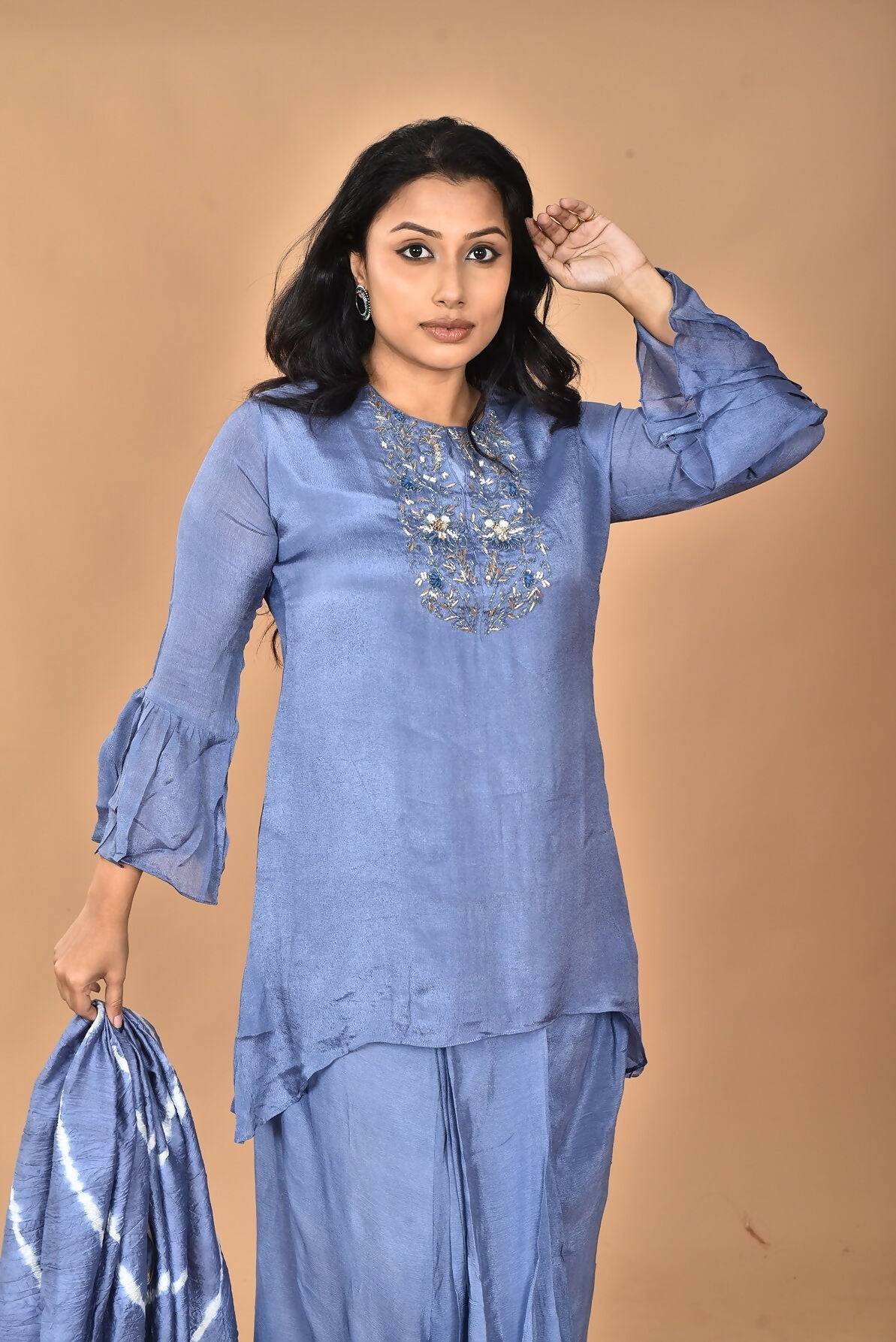 Morchari Women And Hand Embroidery Palazzo Set-Grey