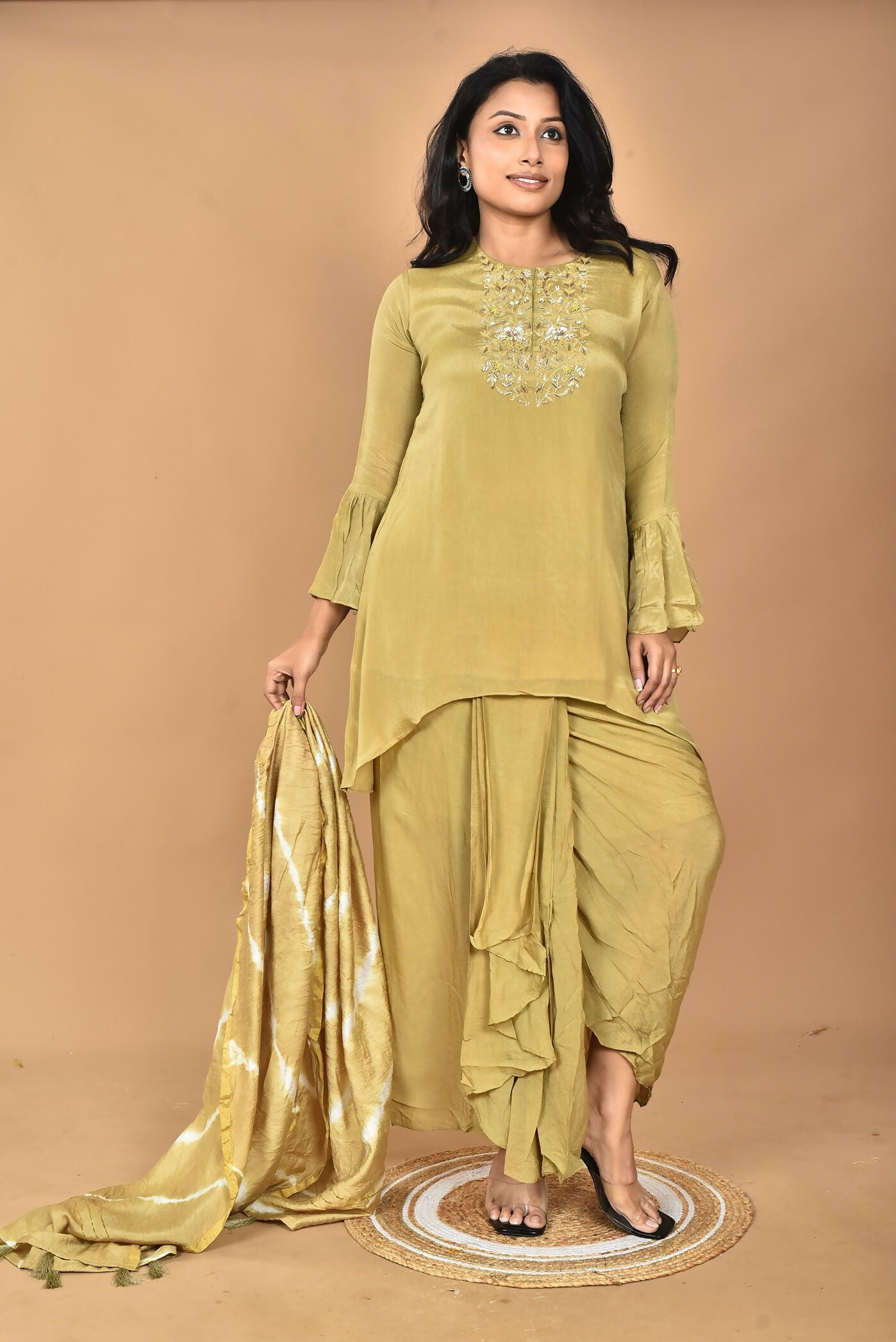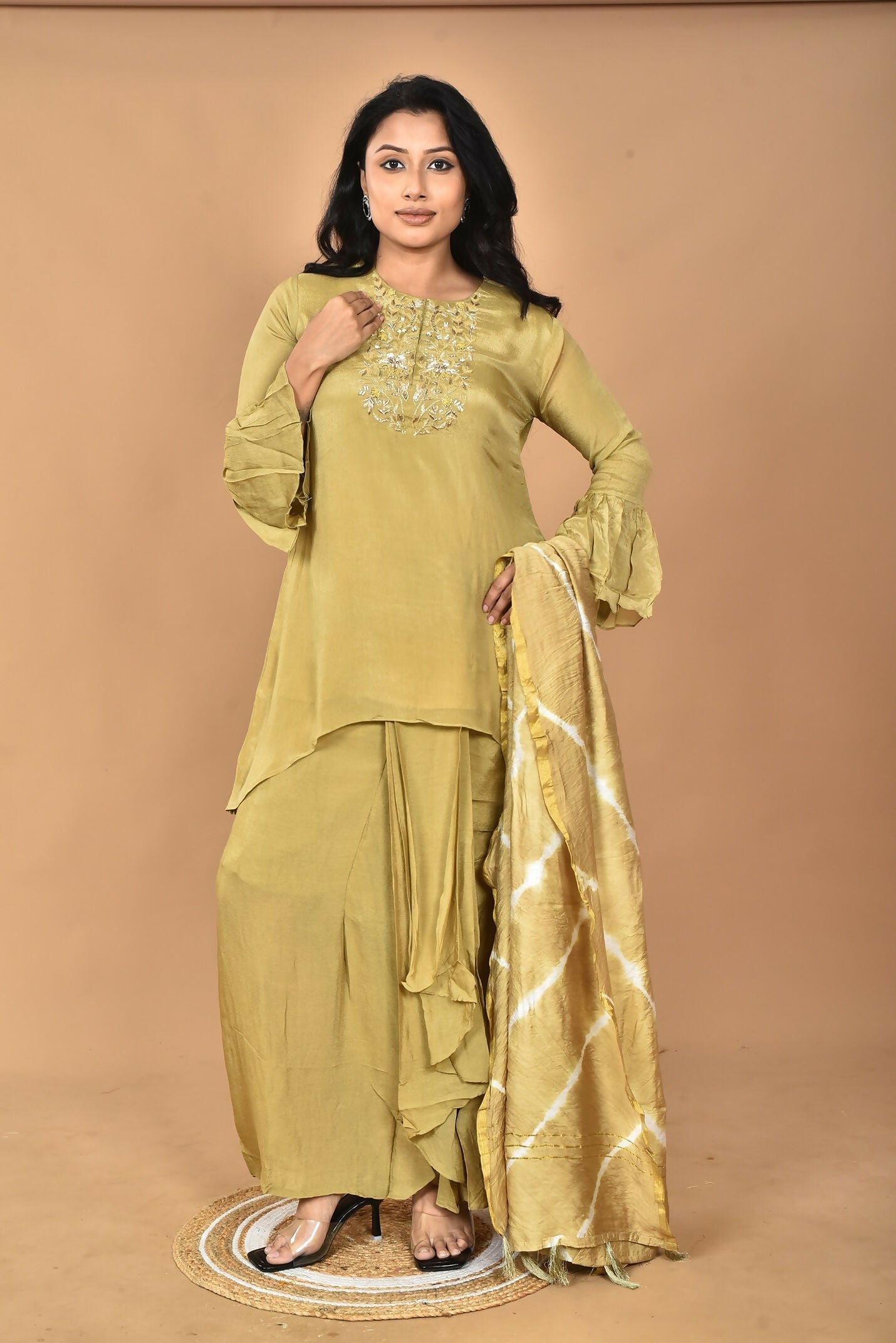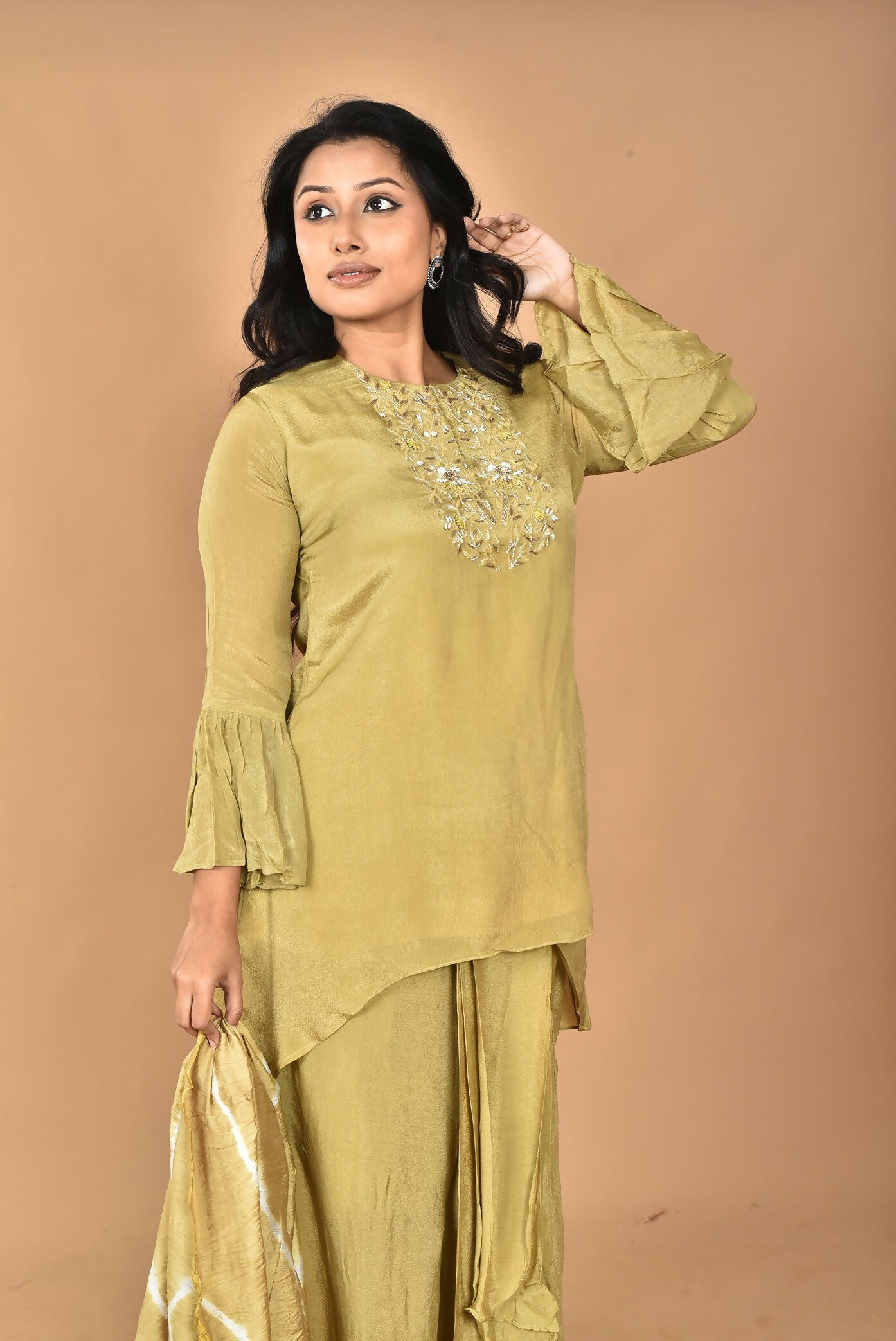 Morchari Women And Hand Embroidery Palazzo Set-Mehandi Green