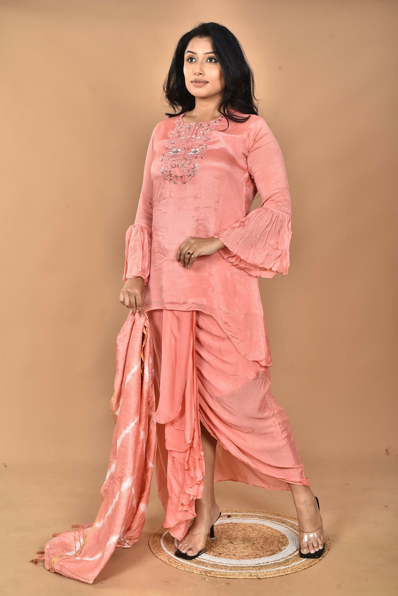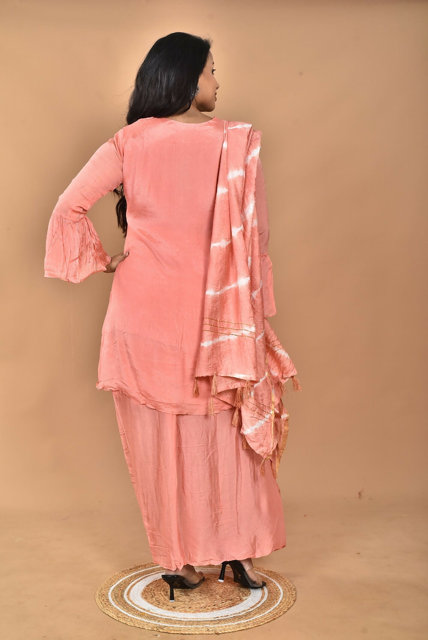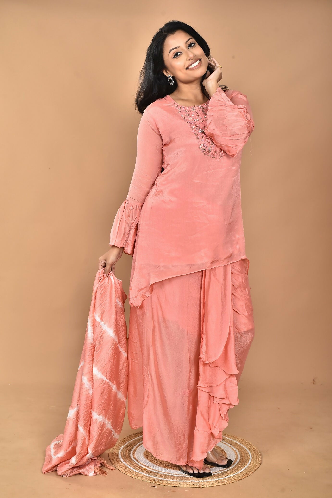 Morchari Women And Hand Embroidery Palazzo Set-Peach