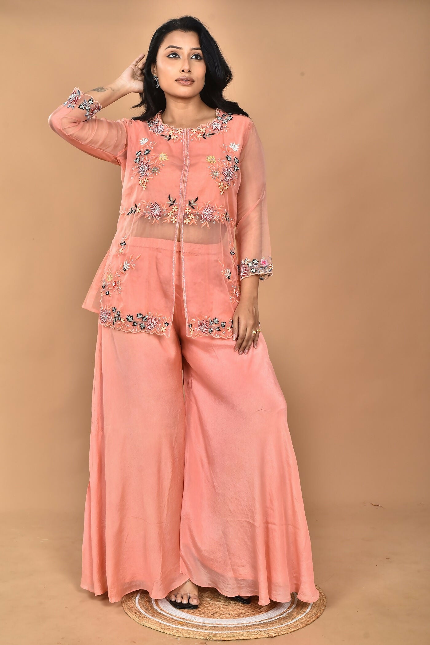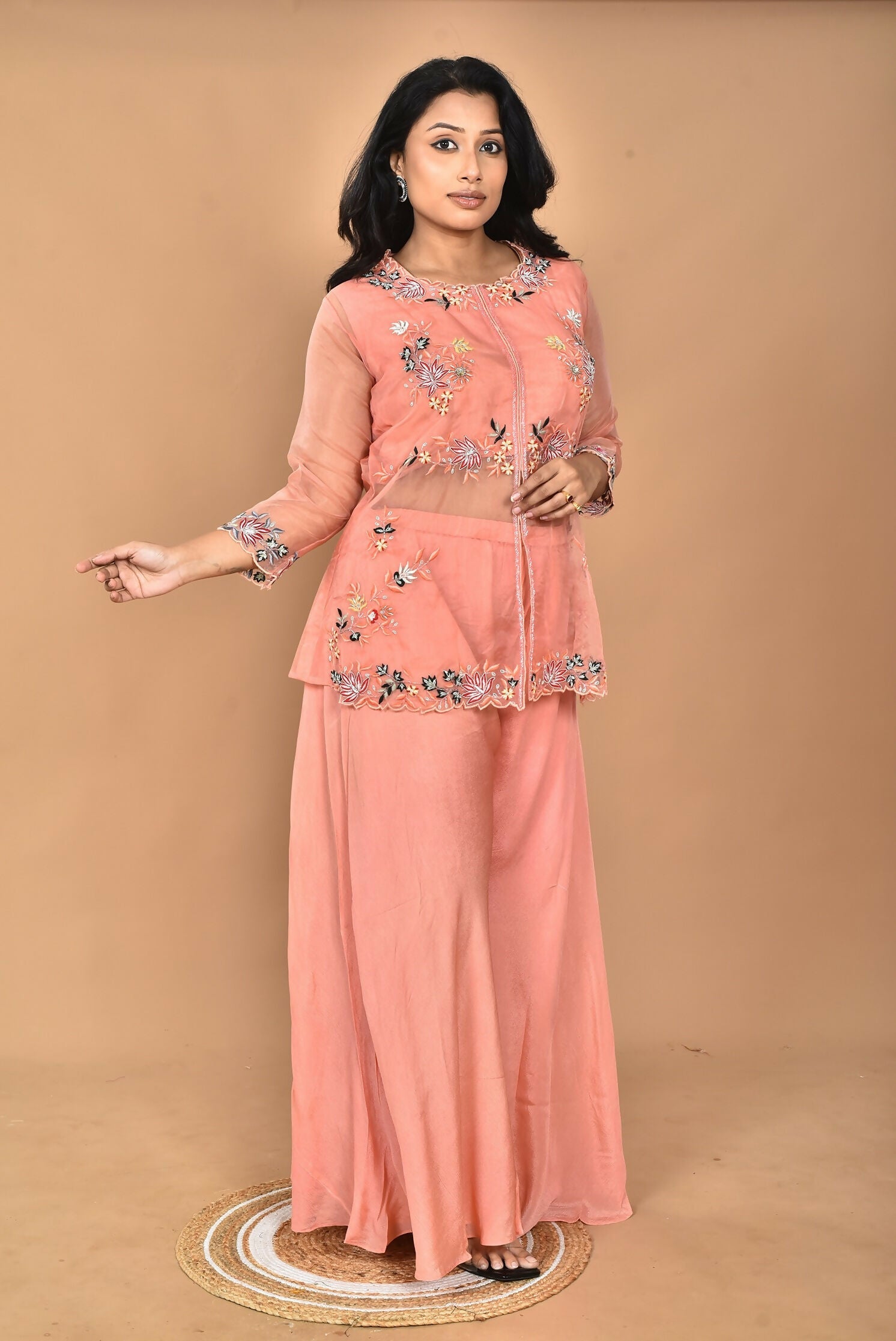 Morchari Women And Hand Embroidery Palazzo Set-Peach