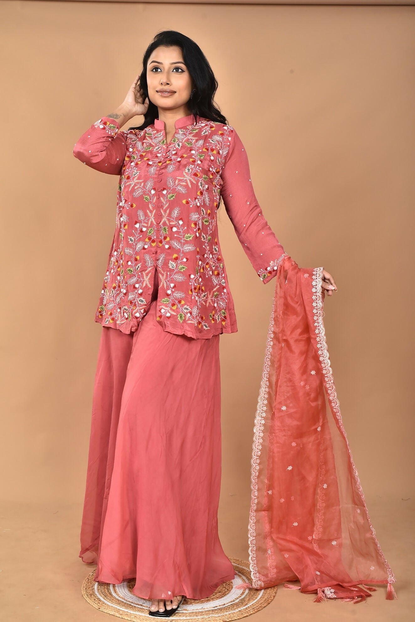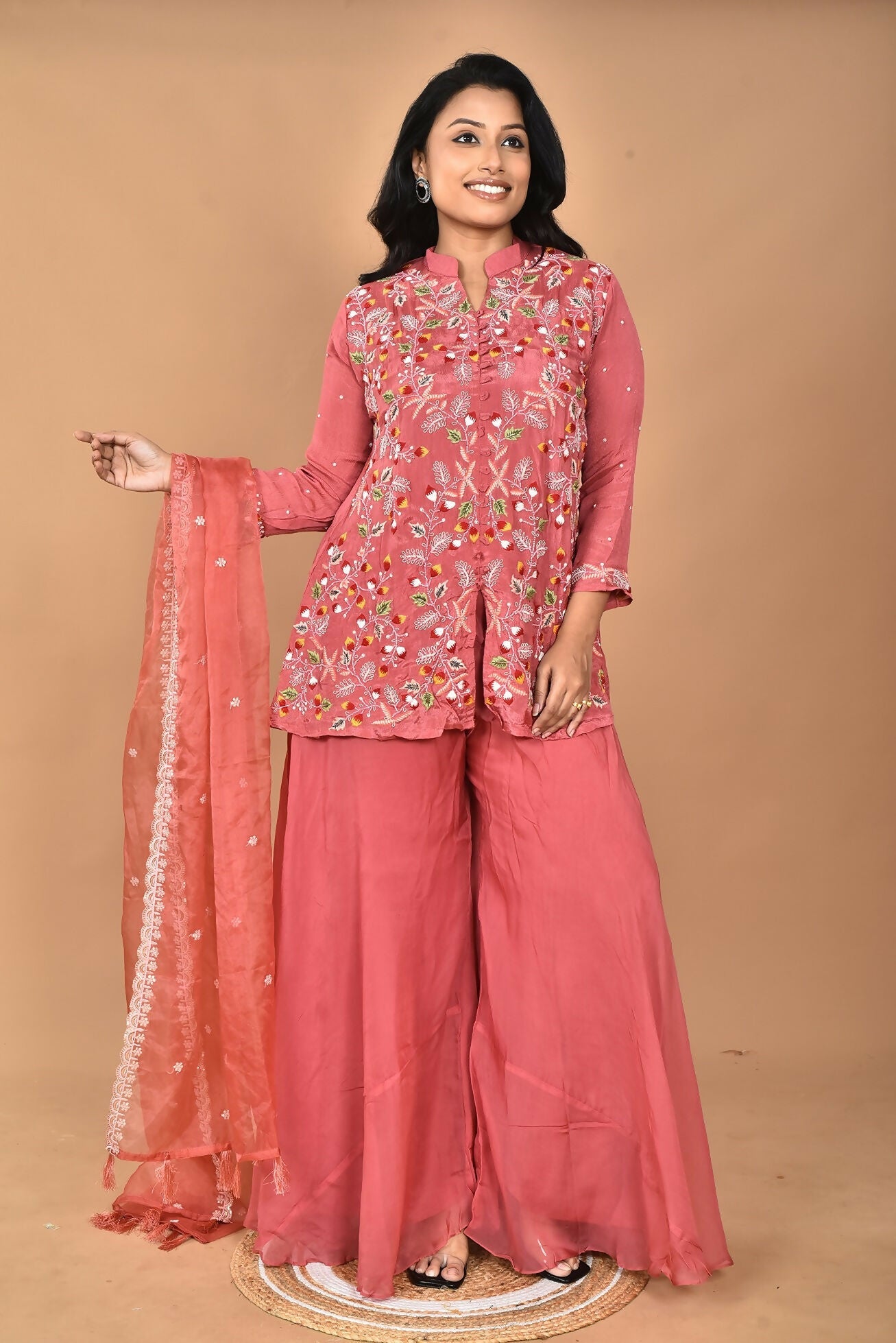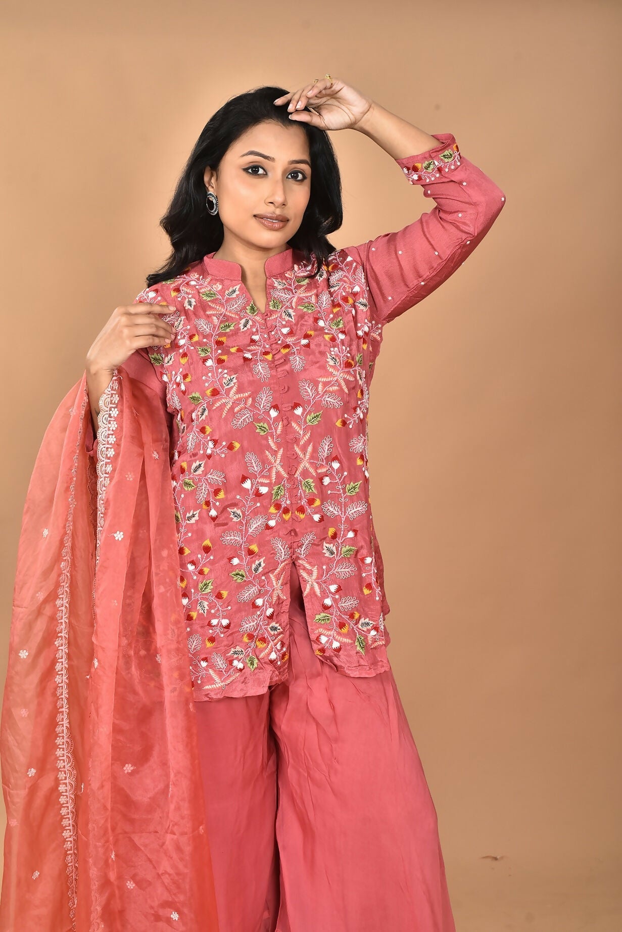 Morchari Women And Hand Embroidery Palazzo Set-Rust