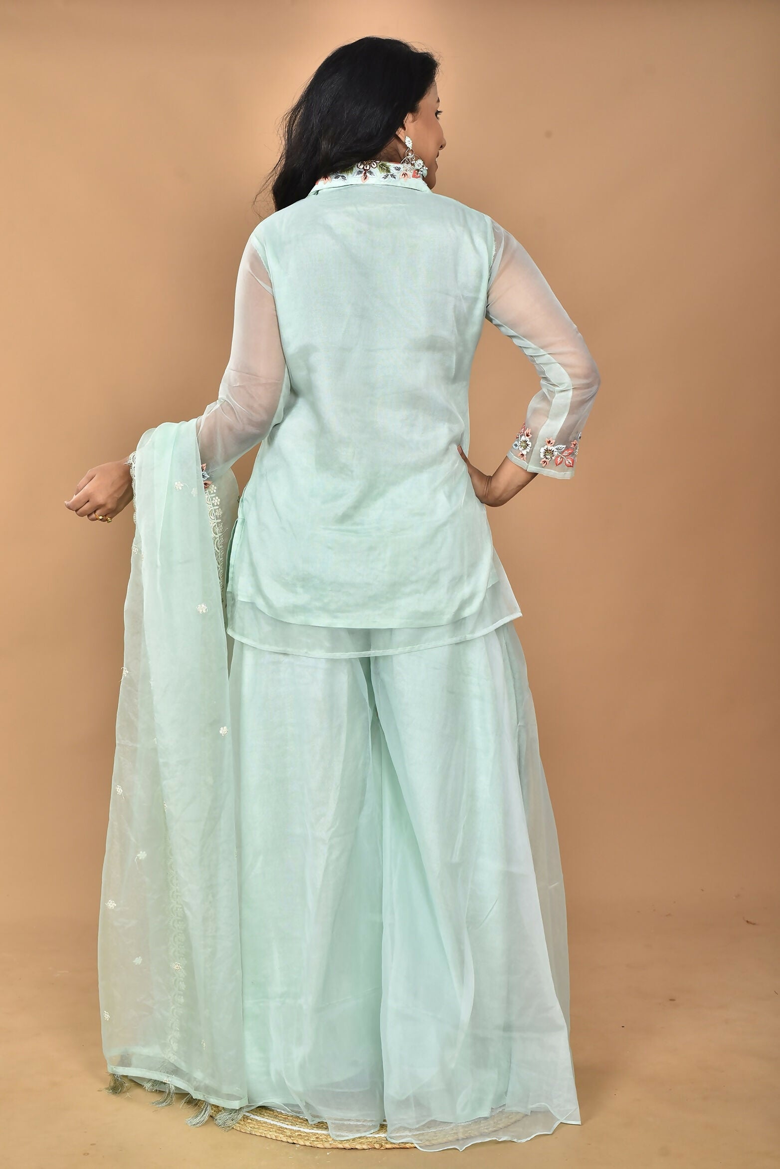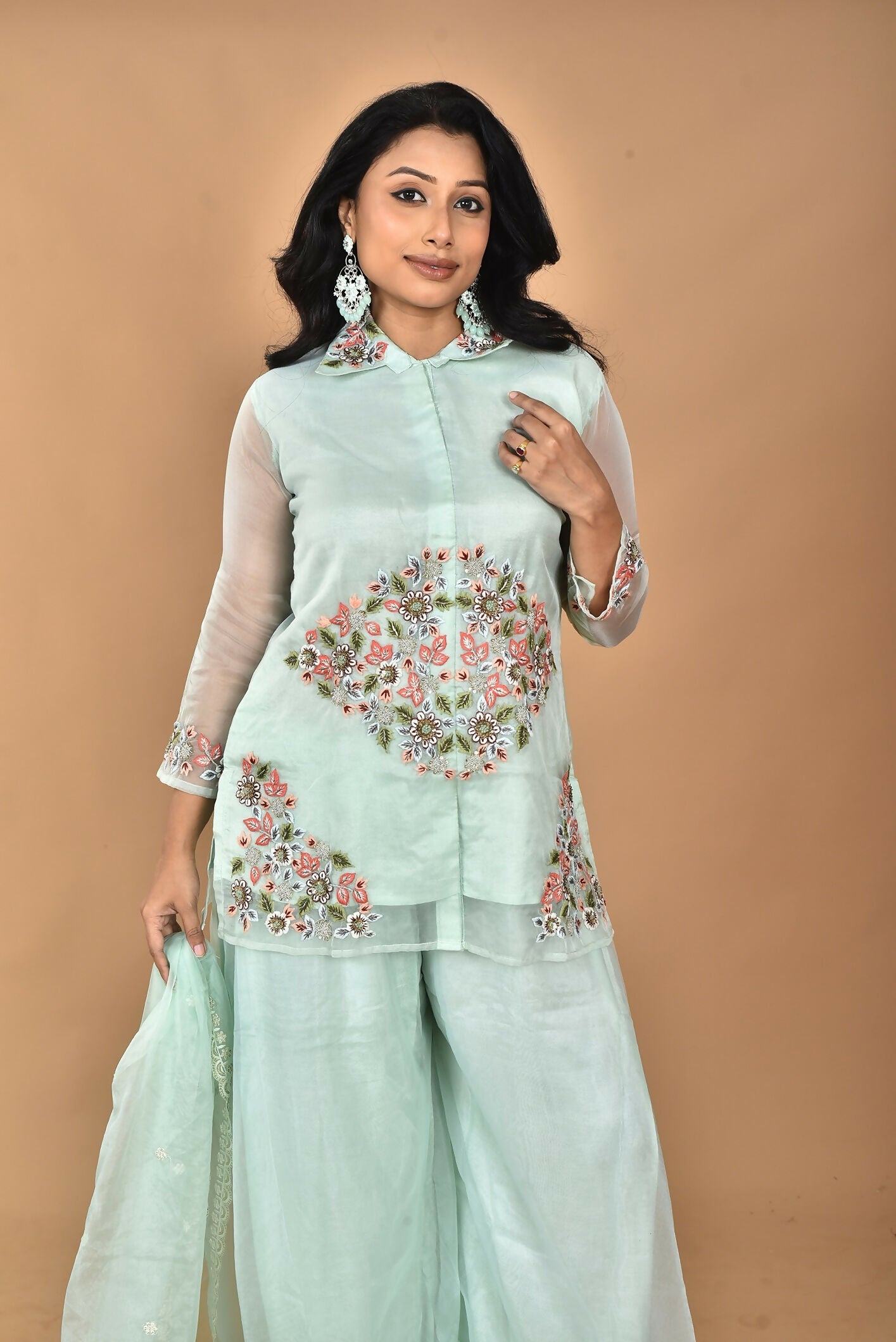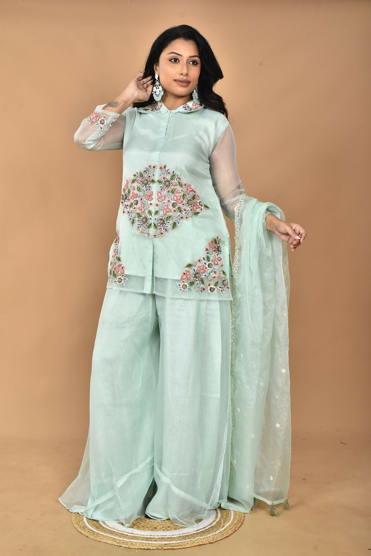 Morchari Women And Hand Embroidery Palazzo Set-Sea Green