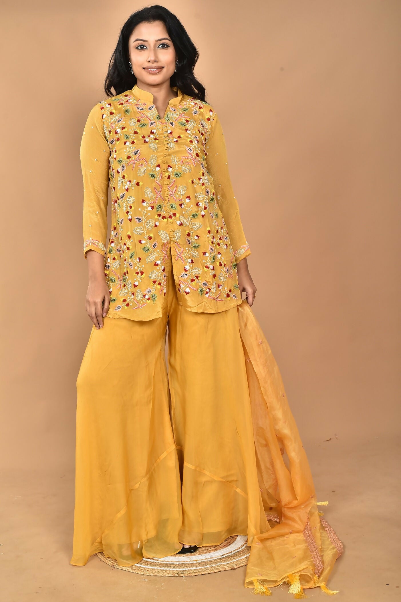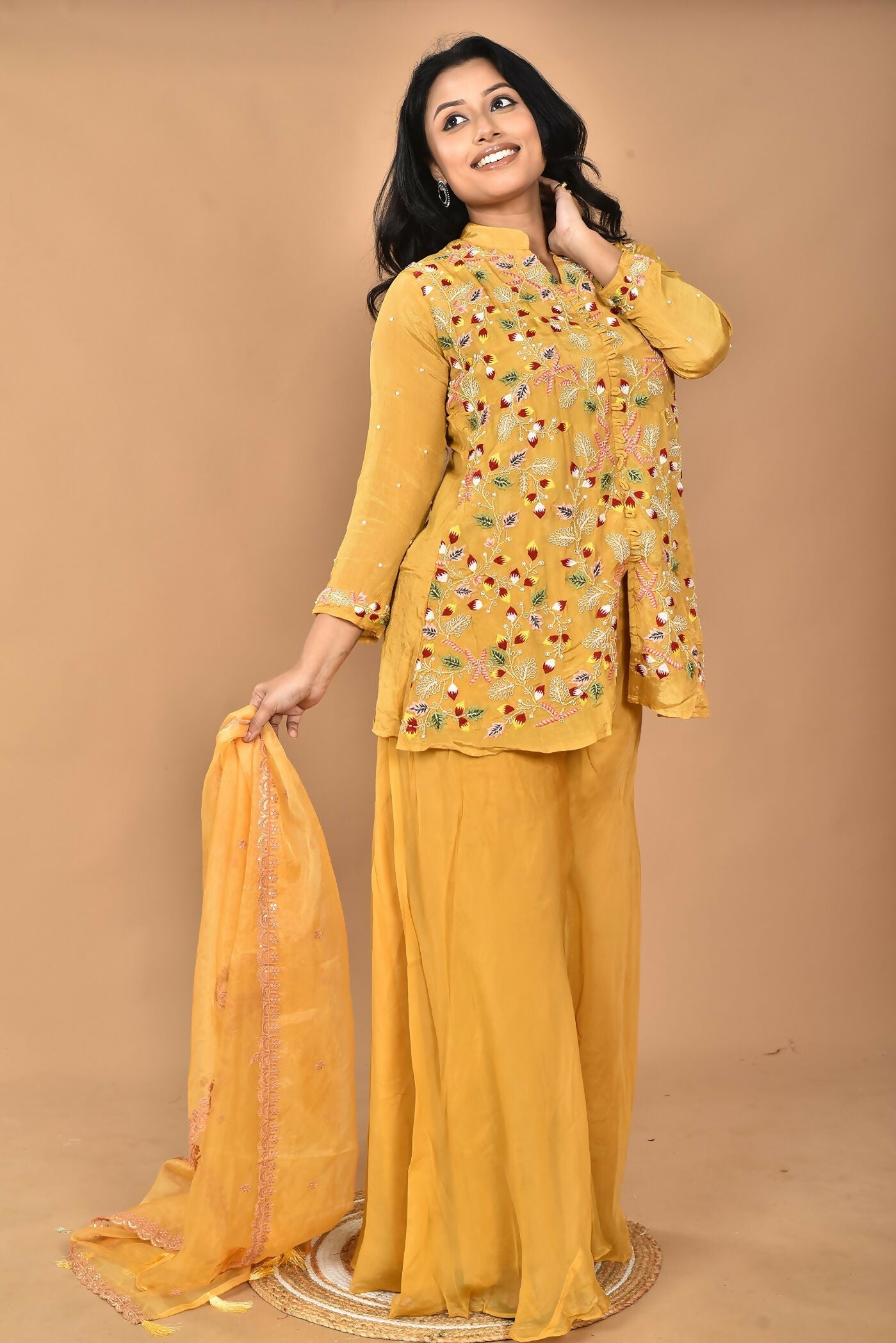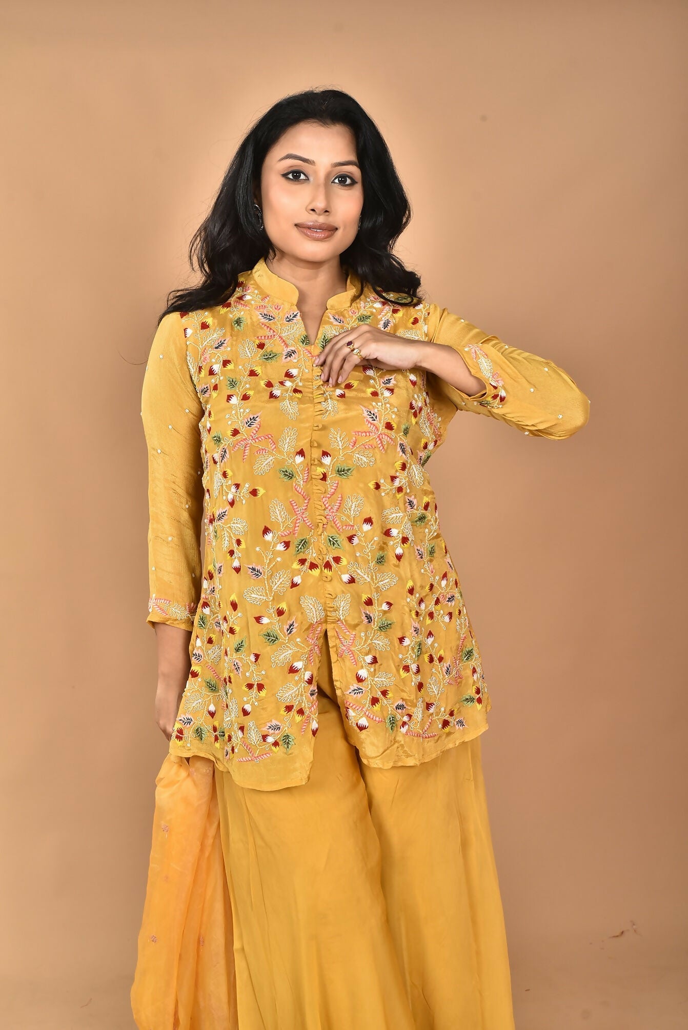 Morchari Women And Hand Embroidery Palazzo Set-Yellow