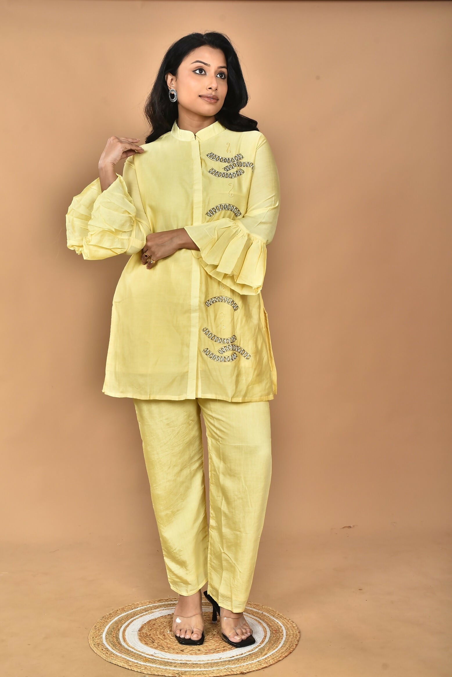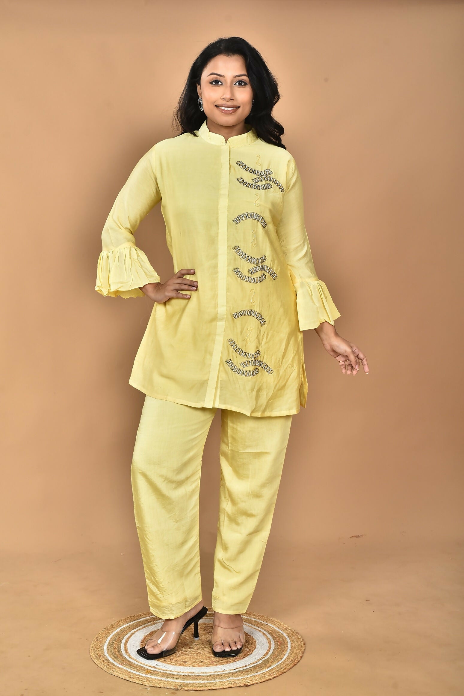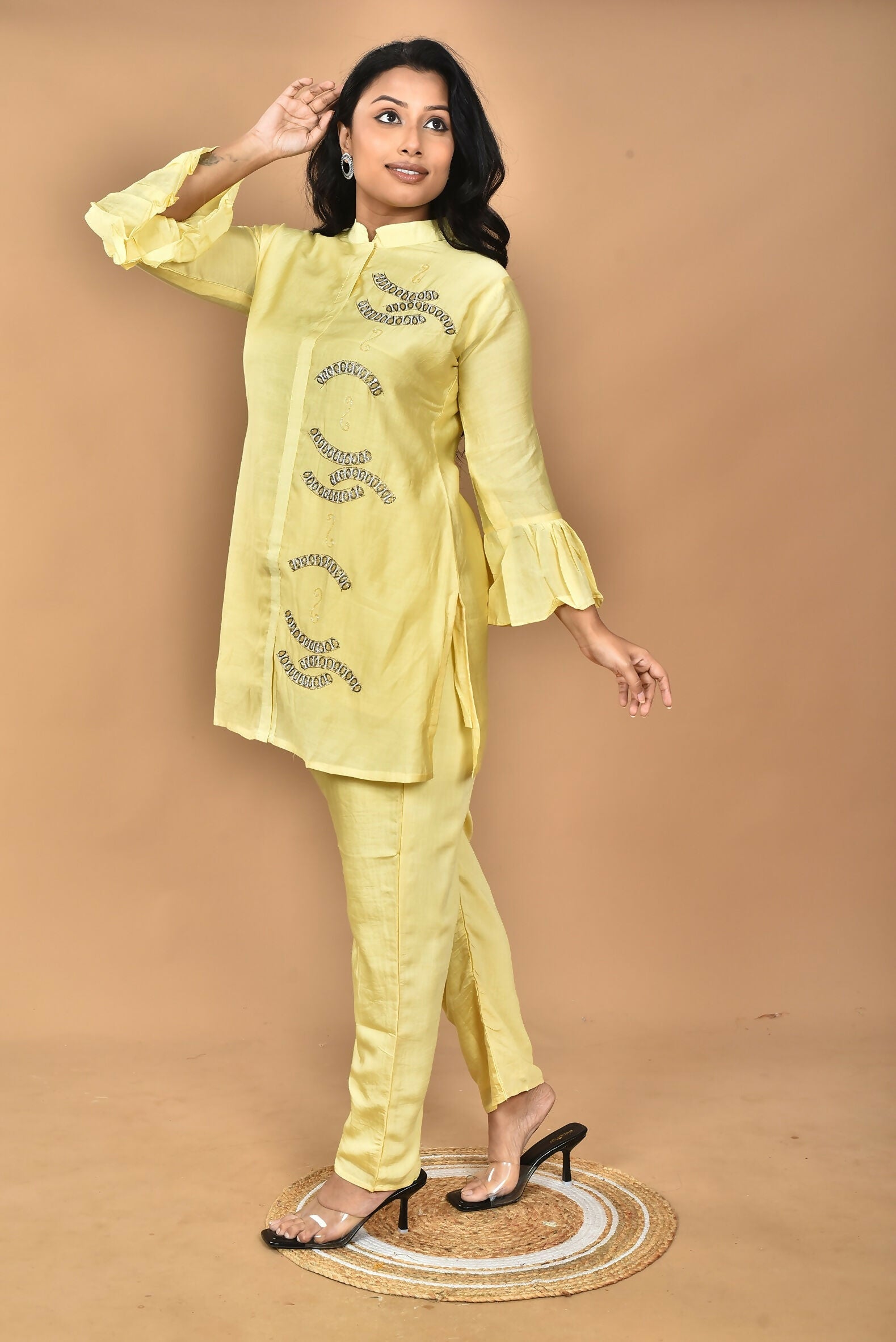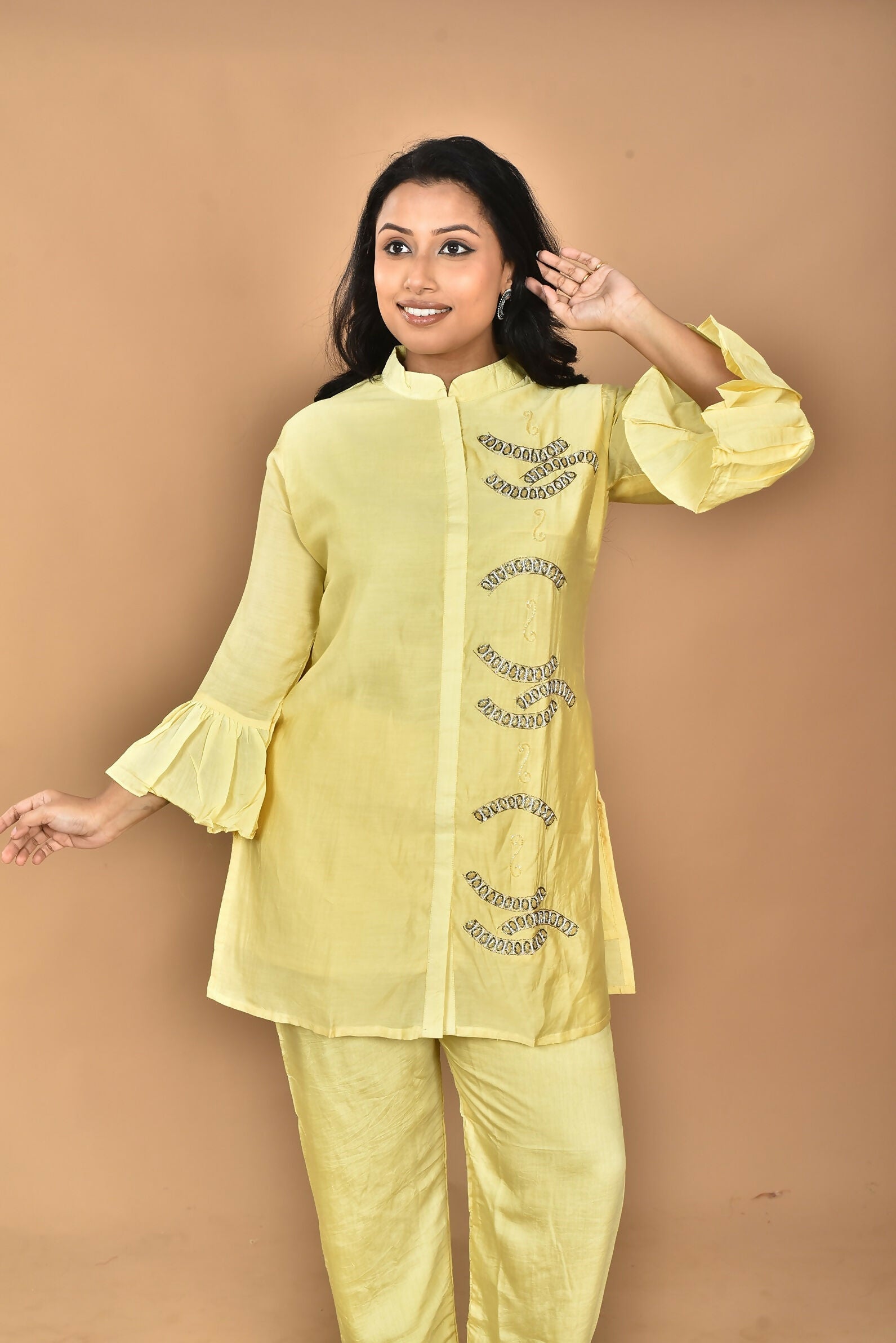 Morchari Women Hand Embroidery Co-Ords-Yellow