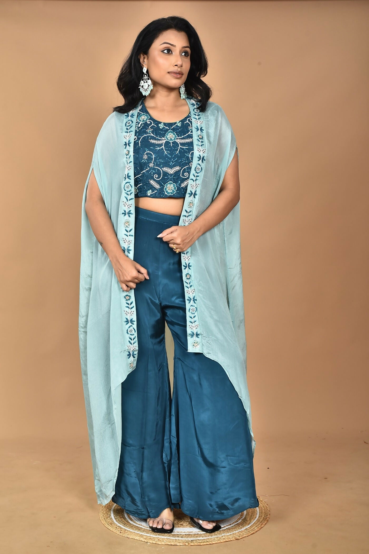 Morchari Women Hand Embroidery Crop Top-Blue