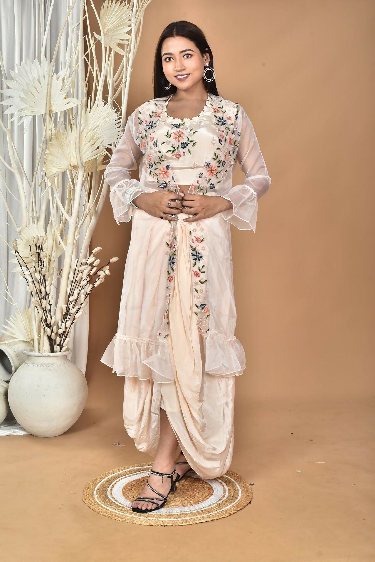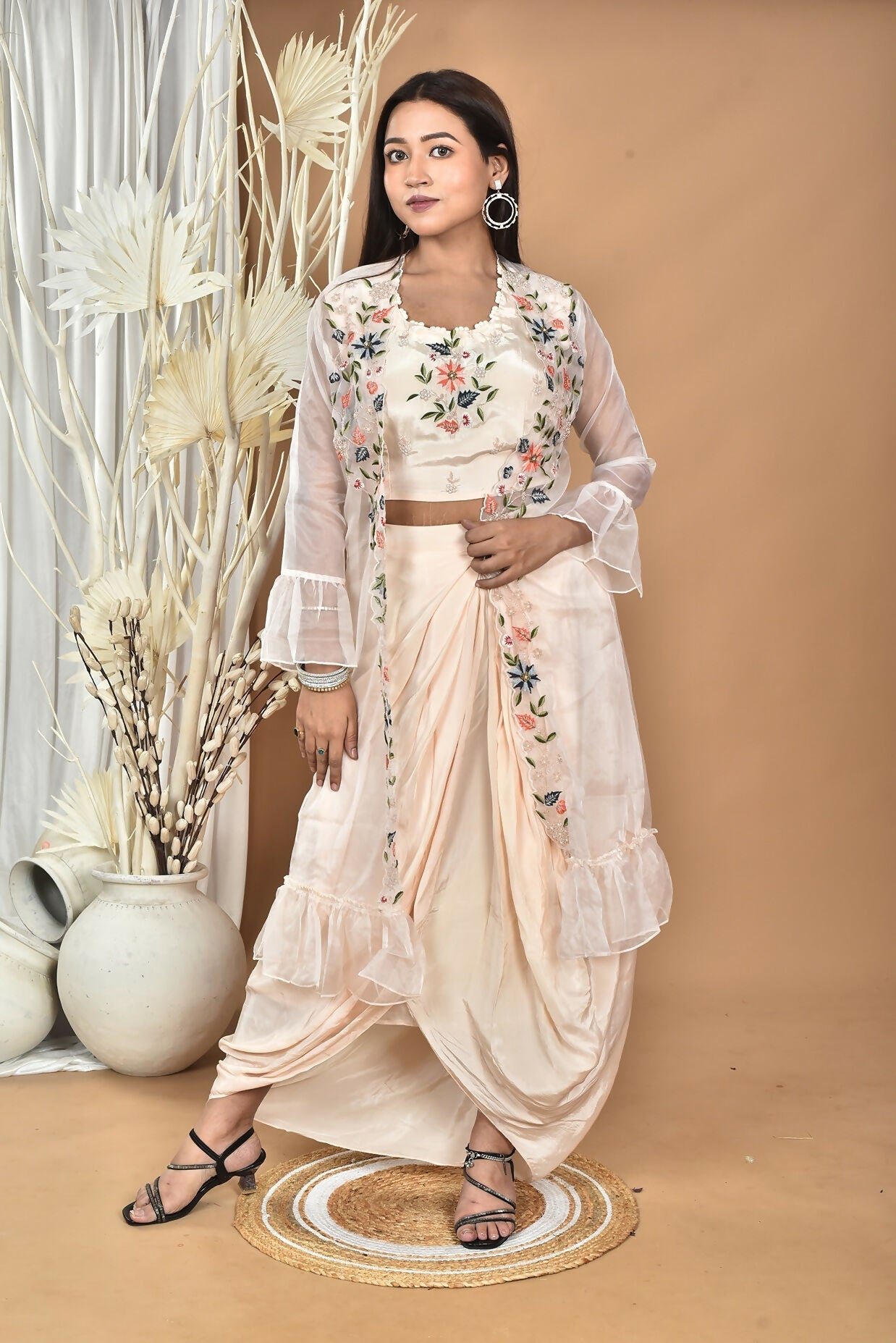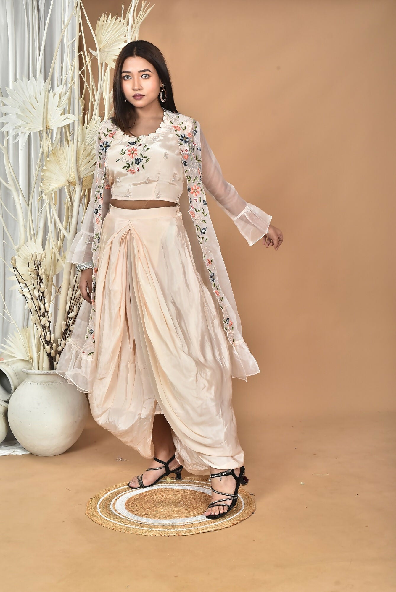 Morchari Women Hand Embroidery Crop Top-Light Peach