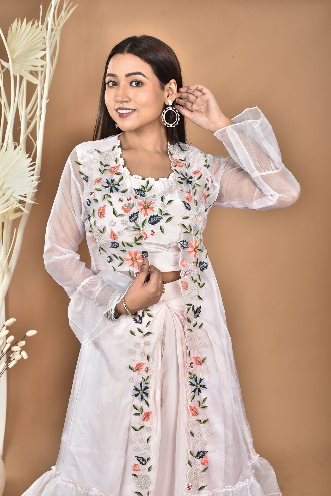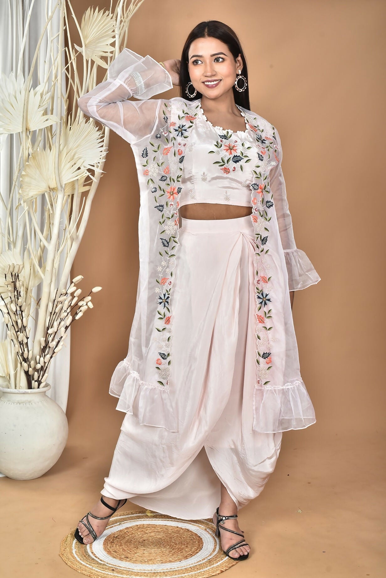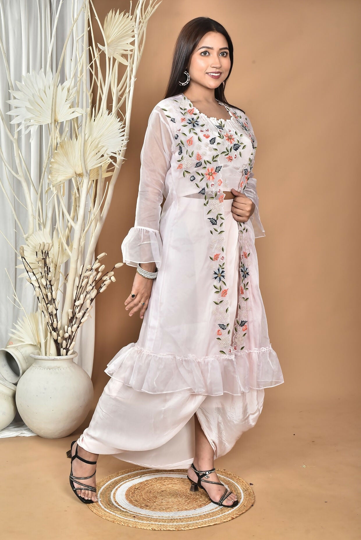 Morchari Women Hand Embroidery Crop Top-Light Pink