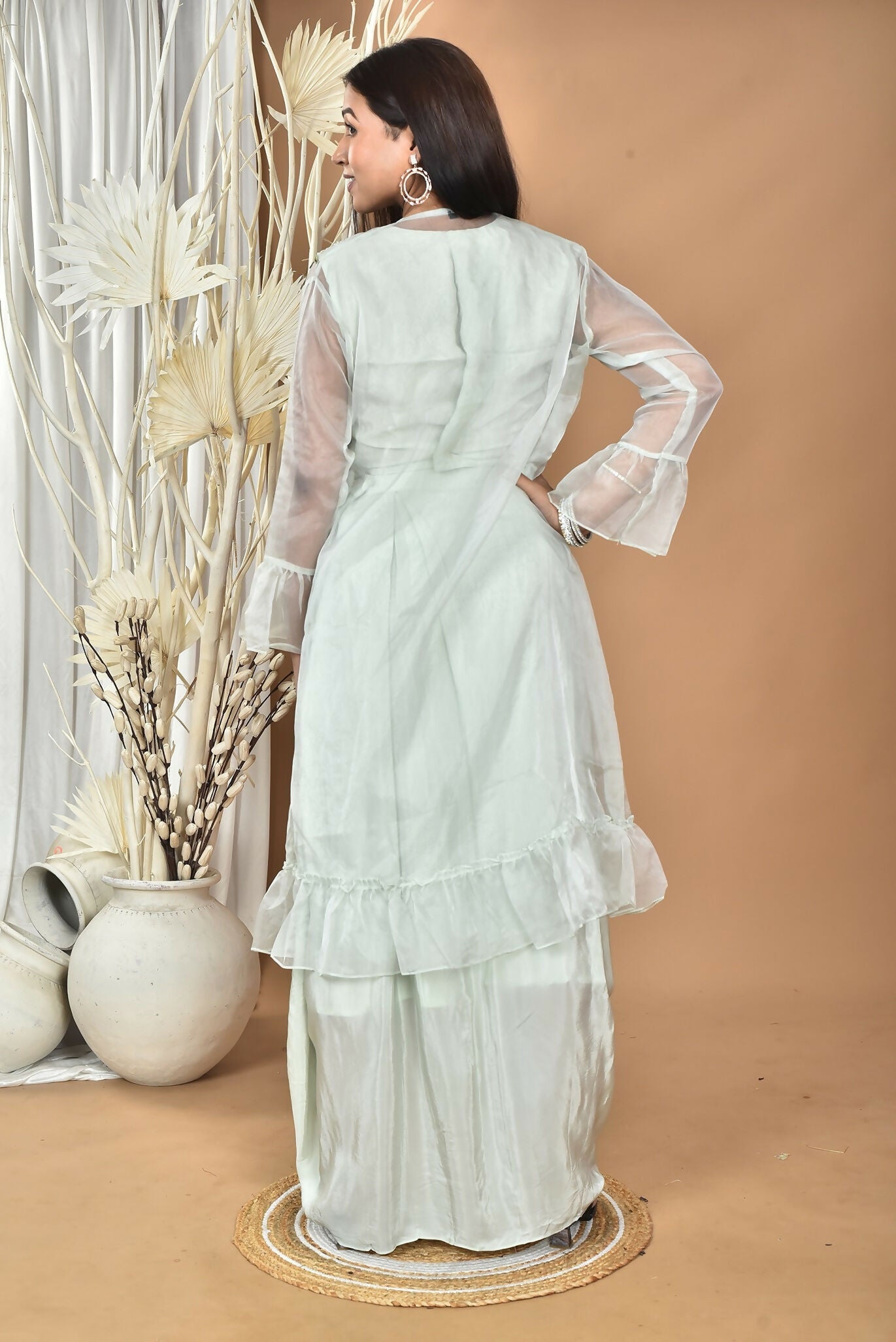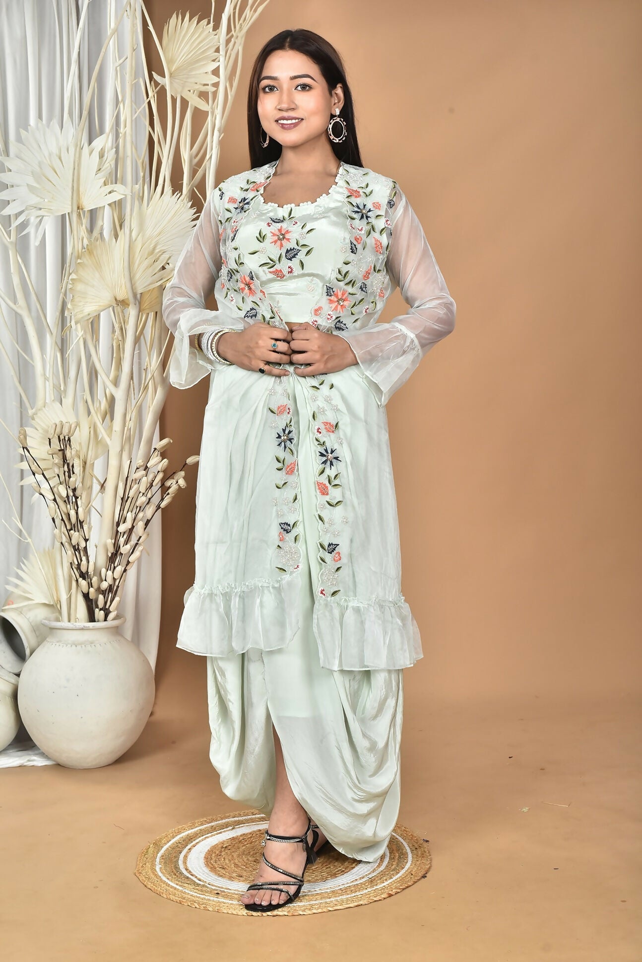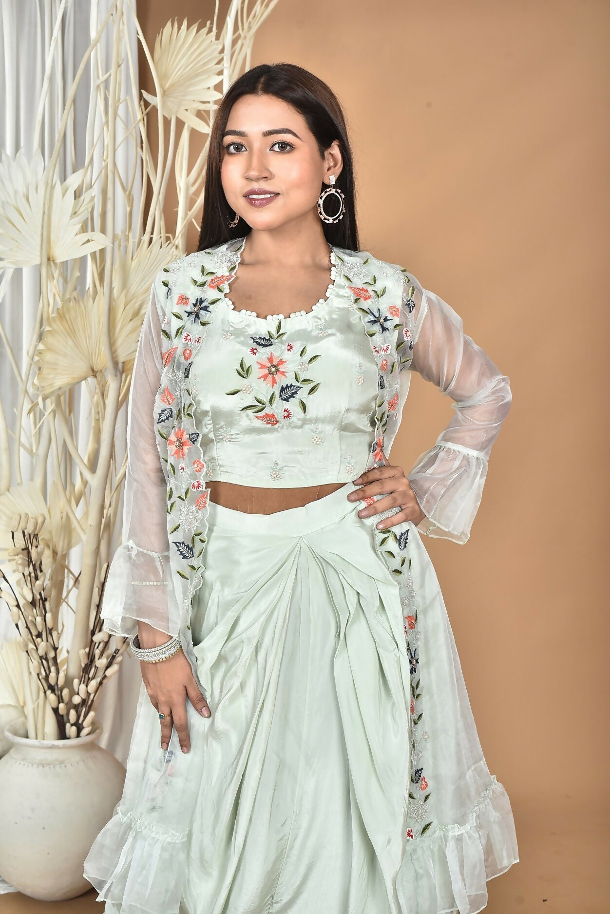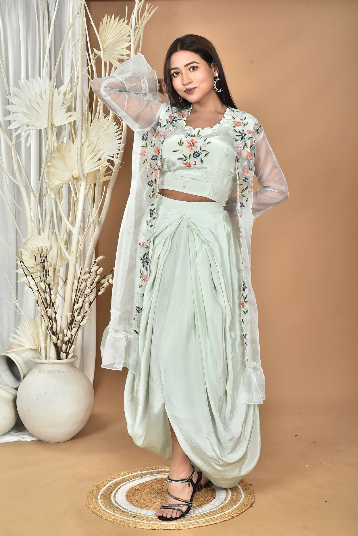 Morchari Women Hand Embroidery Crop Top-Sea Green