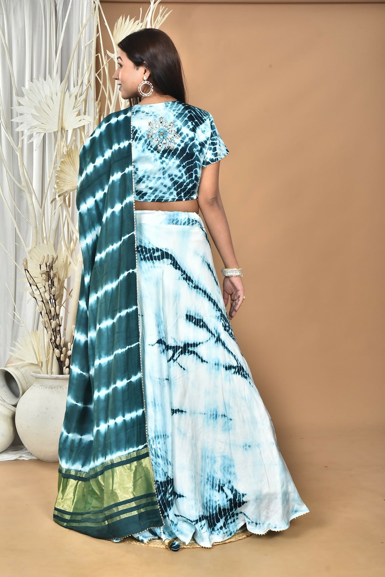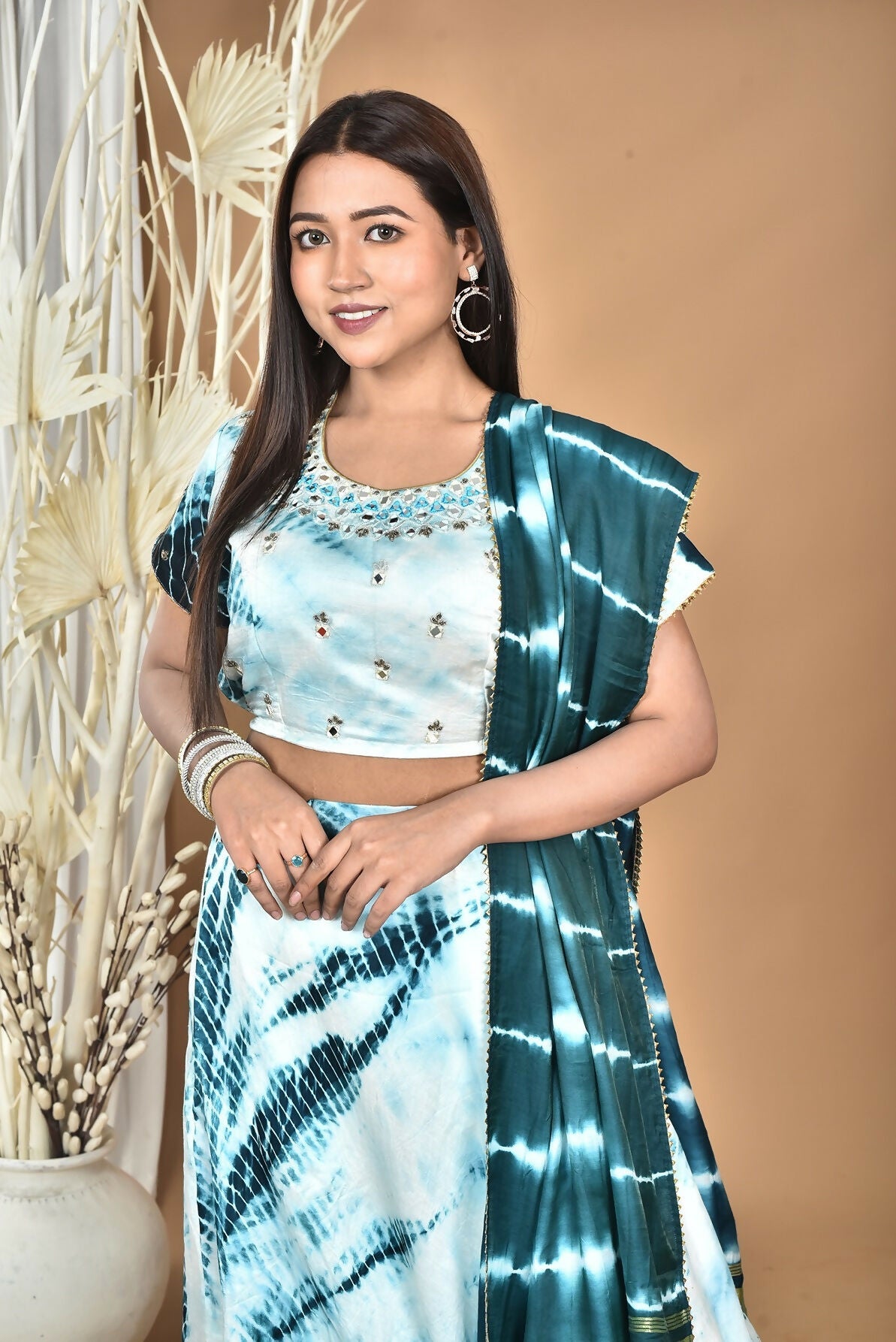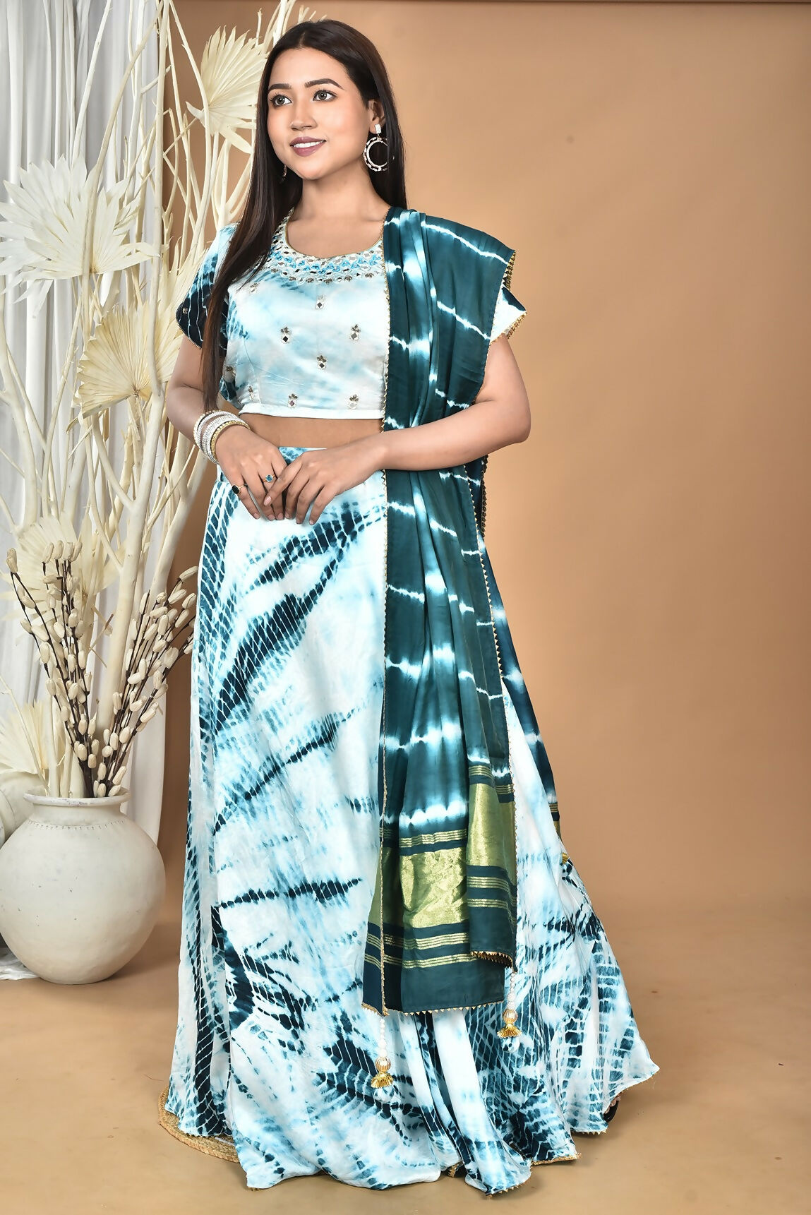 Morchari Women Tai Dai And Hand Embroidery Lehenga-Green