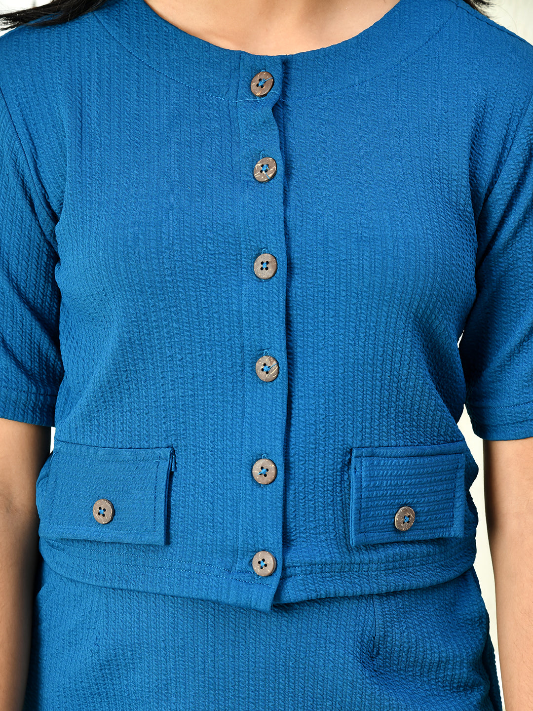 Myshka Girls Blue Solid Polyester Top With Skirt