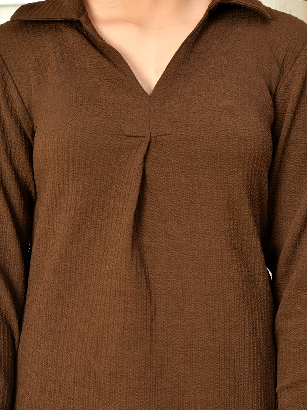 Myshka Girls Brown Solid Polyester Top With Trouser