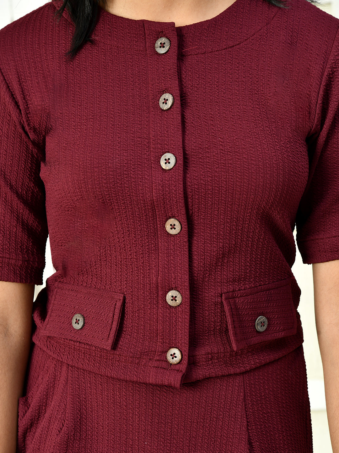 Myshka Girls Maroon Solid Polyester Top With Skirt