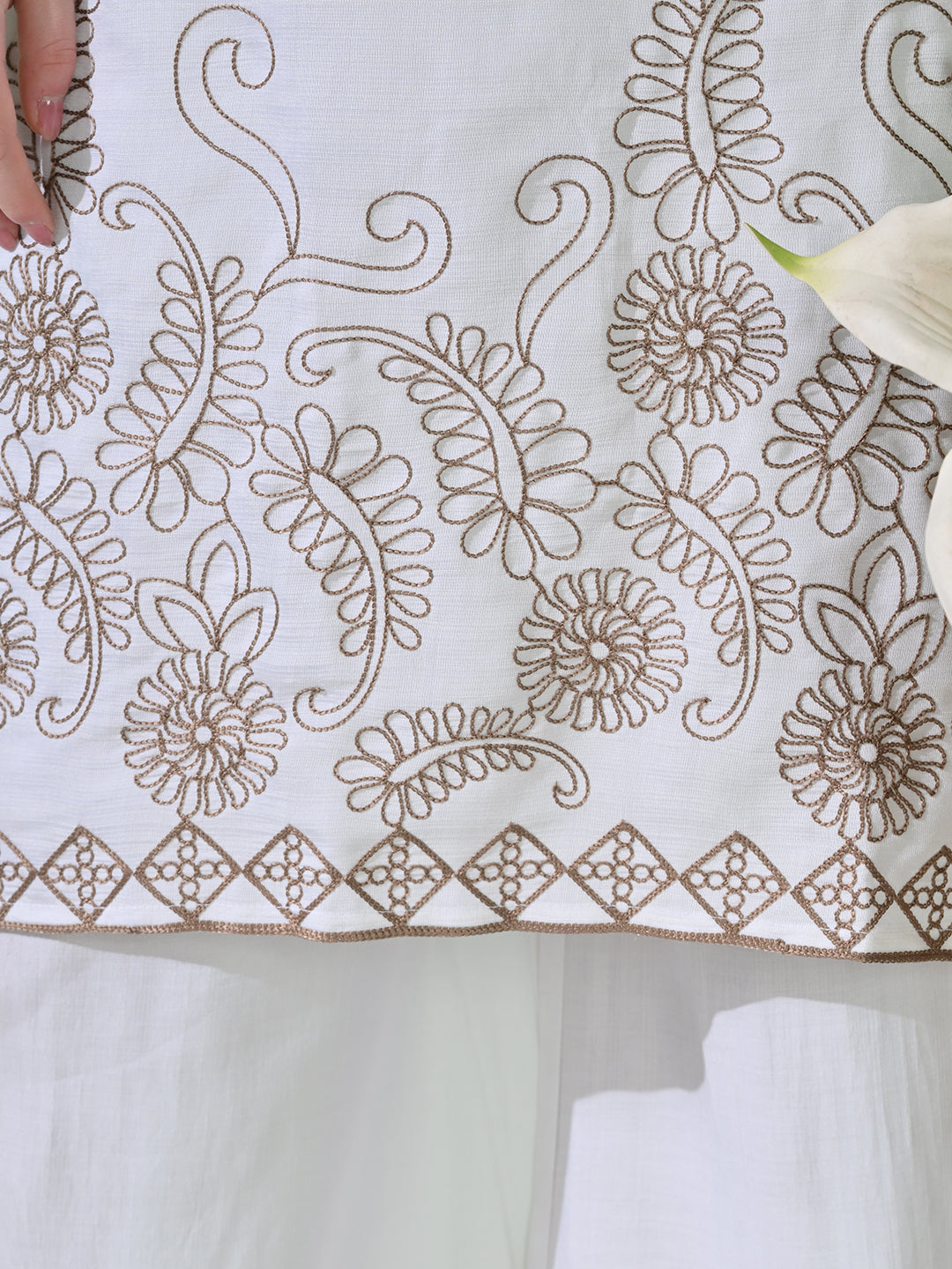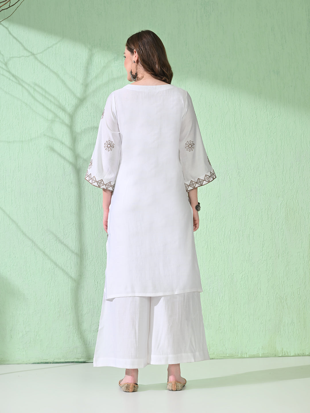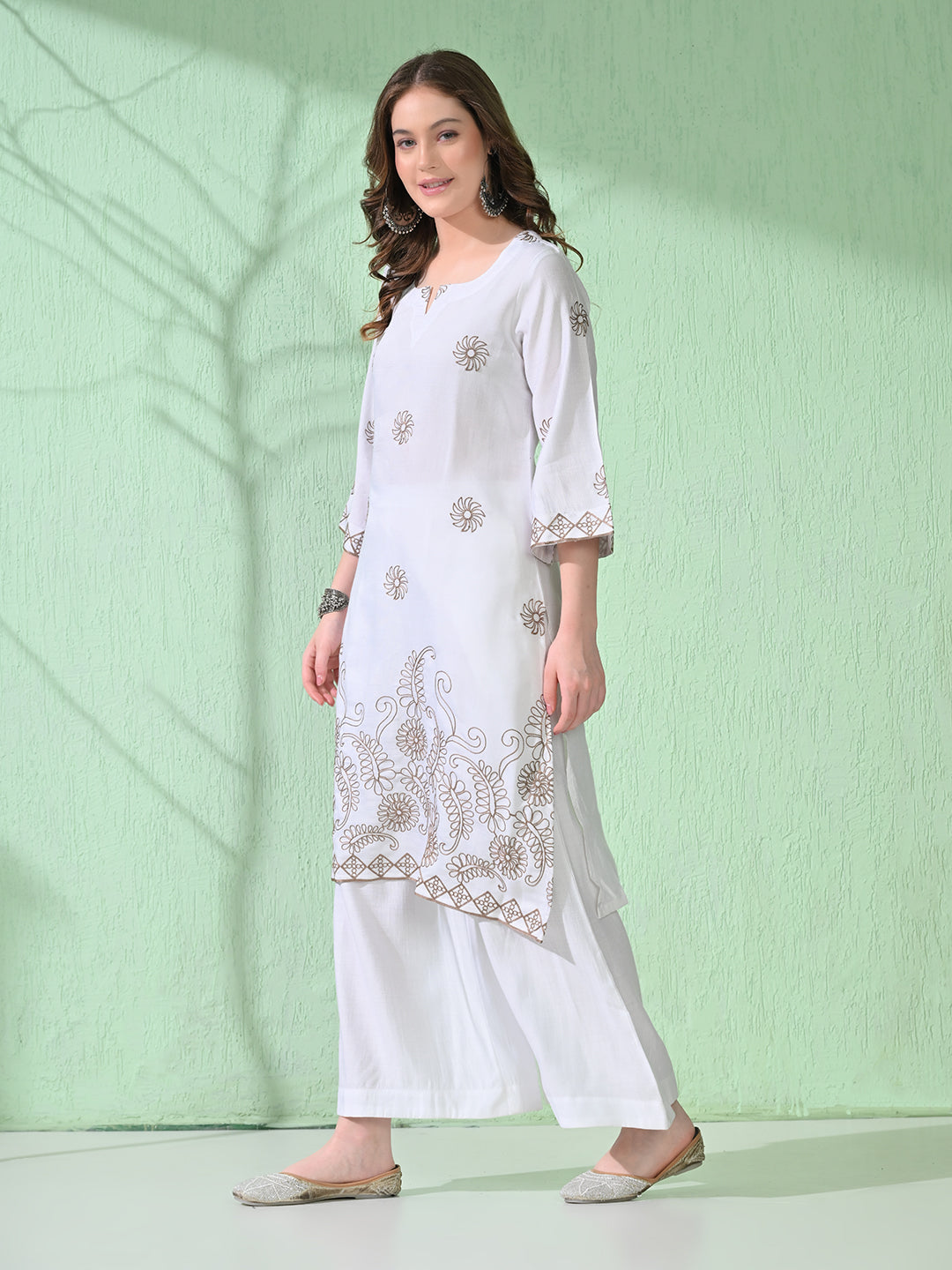 Myshka Women's Embroidered Calf Length White Kurta With Palazzo