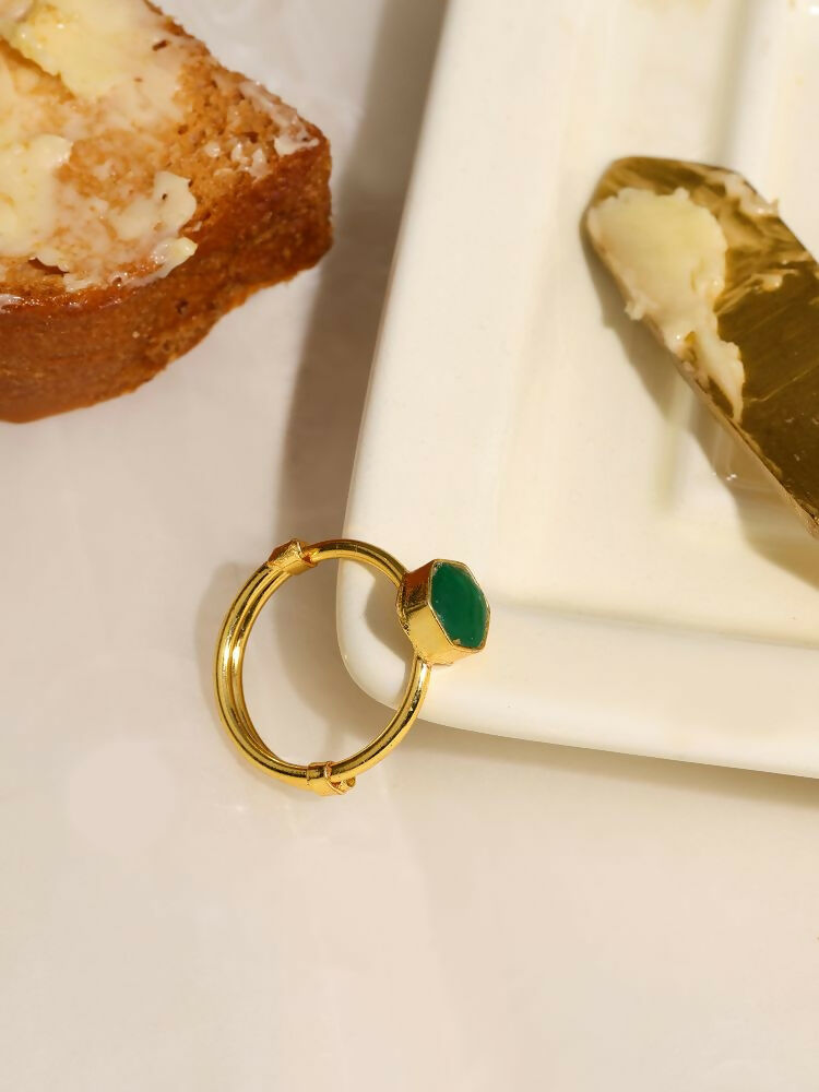 Natural Stone Green Hexagon Ring - Ruby Raang