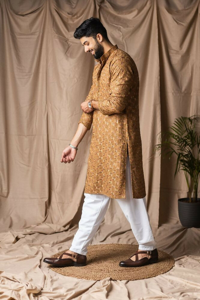 Occur Yellow Rayon Thread Embroidery Work Kurta Set - Mahotsav