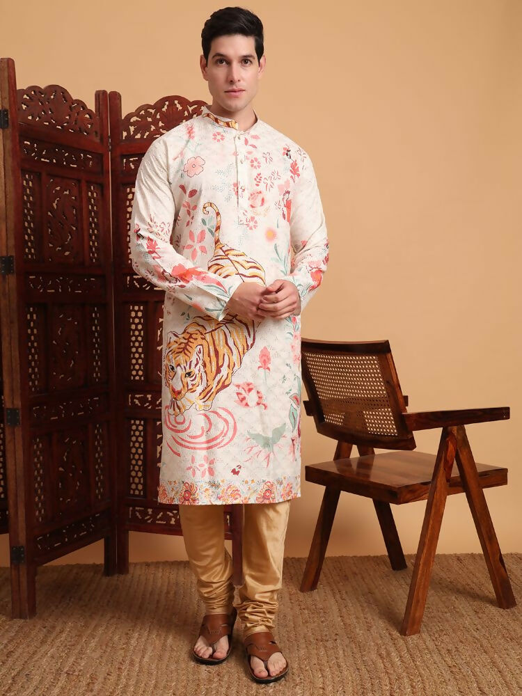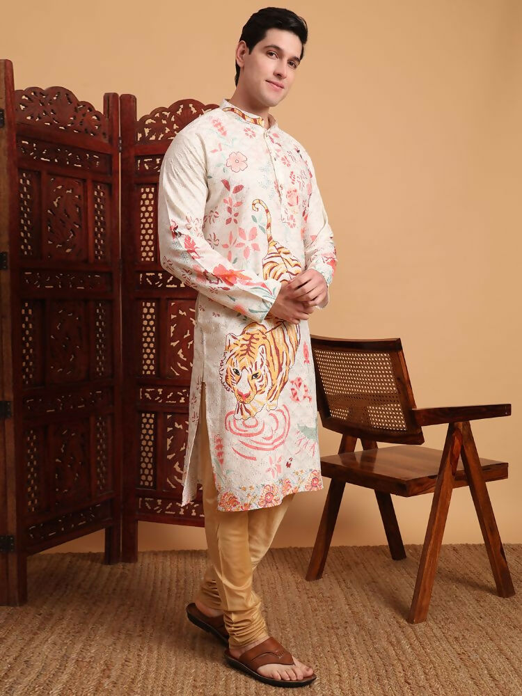 Off White Cotton Printed Chikankari Embroidery Work Kurta - Mahotsav