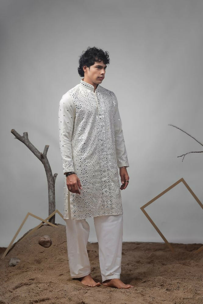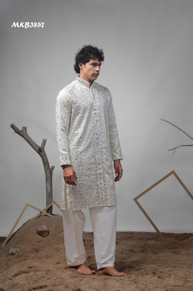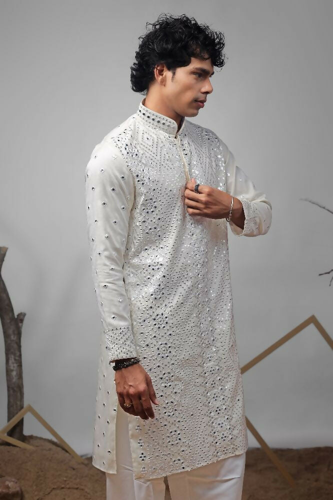 Off White Viscose Heavy Embroidery Work Kurta Set - Mahotsav
