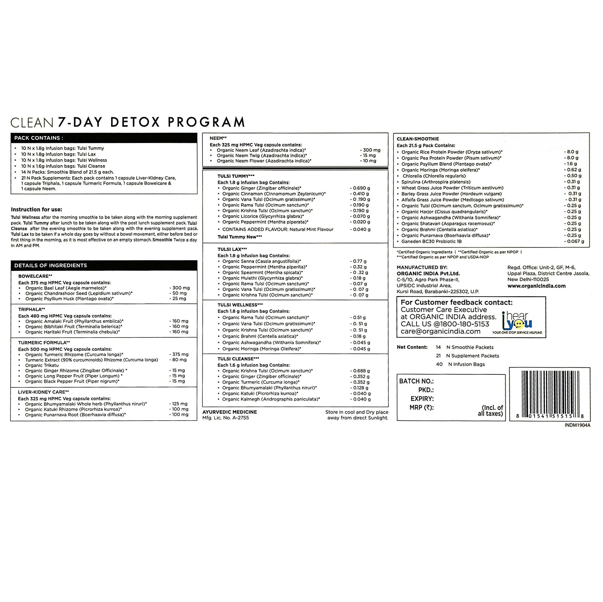 About the Kit:- A healthy life is made easy with ORGANIC INDIA Clean 7 Days Kit - a comprehensive detoxification and rejuvenation program for the body! Reminder of clean eating and clean lifestyle habits & helps to get back on track after a holiday or big event. These wholesome and carefully curated ingredients with whole herbs offered through teas, infusions, and smoothies are ideal for supporting the body’s ability to clear away toxins, strengthen immune function and support optimal health. Feel a new burst of energy and resilience with the power of pure herbs.