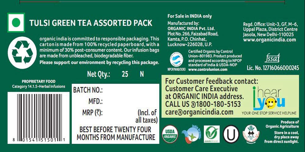 Organic India Tulsi Green Tea Assorted Tea Bags
