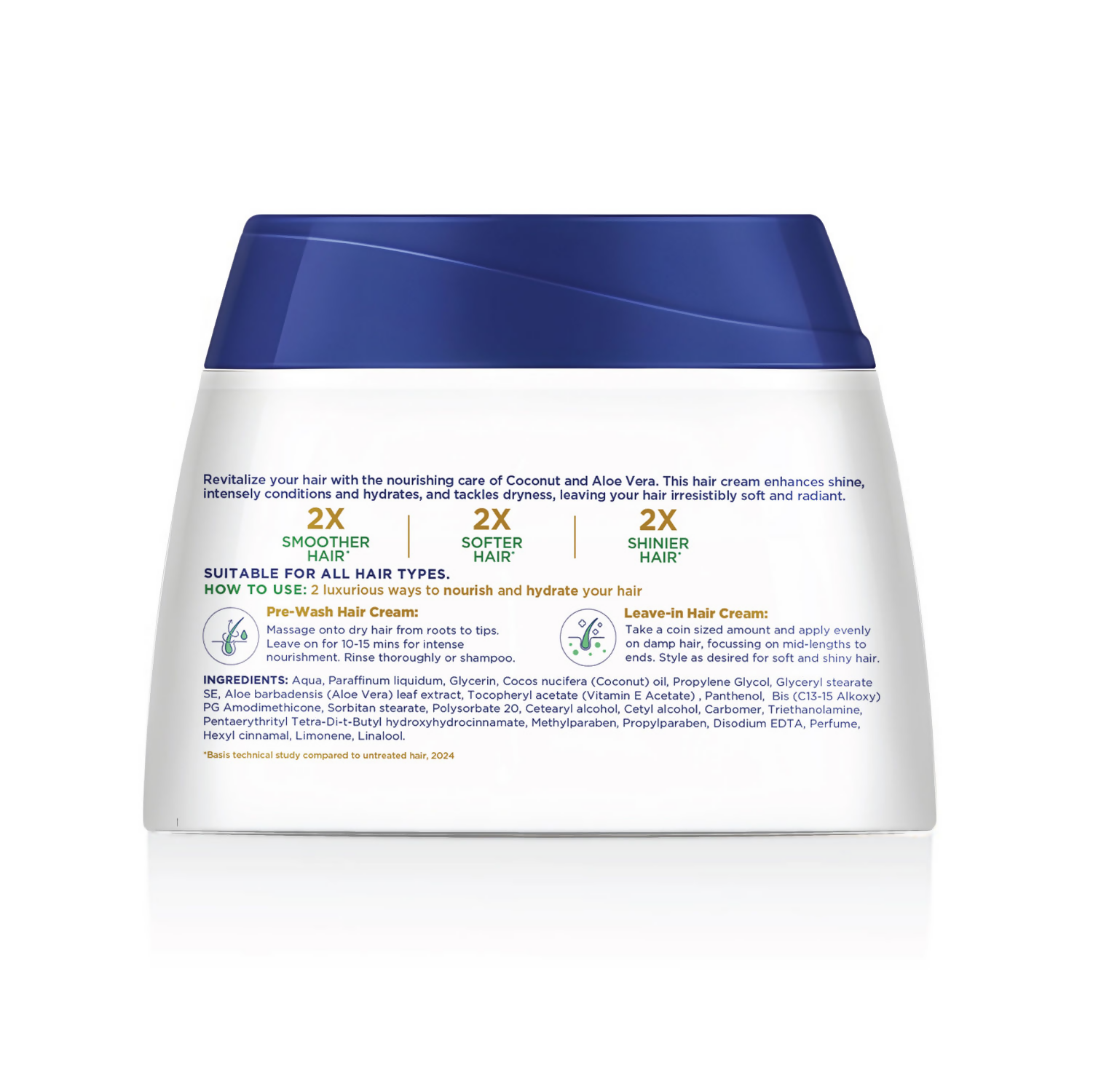 Parachute Advansed Hair Cream, enriched with Coconut & Aloe Vera, revitalizes and provides nourishing care for your hair. It enhances shine, intensely conditions and hydrates, and tackles dryness, leaving your hair irresistibly soft and radiant. This hair cream can be used in two luxurious ways on your hair. As a pre-wash hair cream, massage onto dry hair from root to tips, leave it on for 10-15 minutes for intense nourishment, then rinse thoroughly or shampoo.
