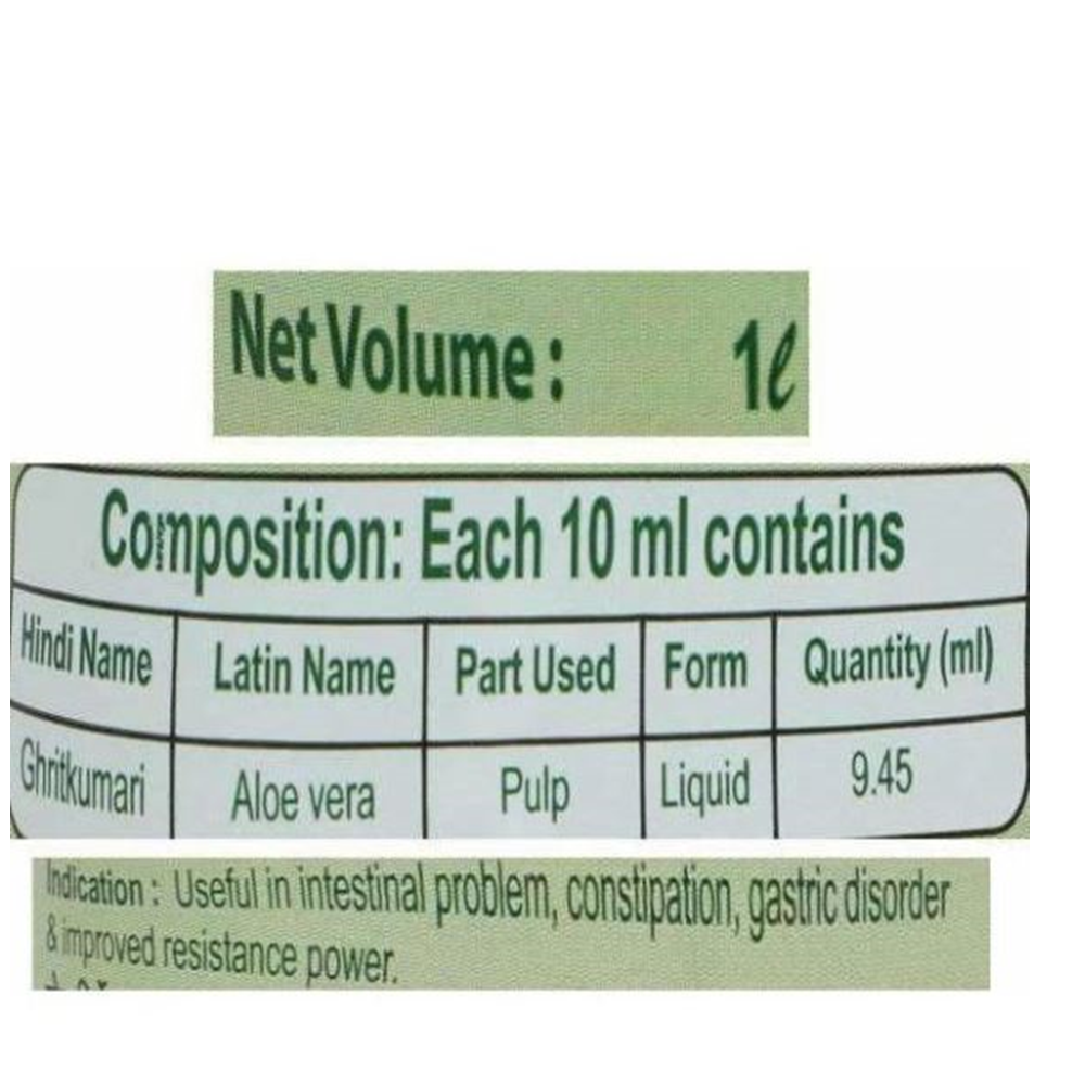 Each 10 ml of Patanjali aloe vera juice with fibre and orange flavour contains