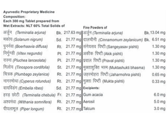 Arjuna Bark, Ashwagandha Root, Vidarikand, Amalaki, Licorice Root, Cardamom, and other herbal extracts.