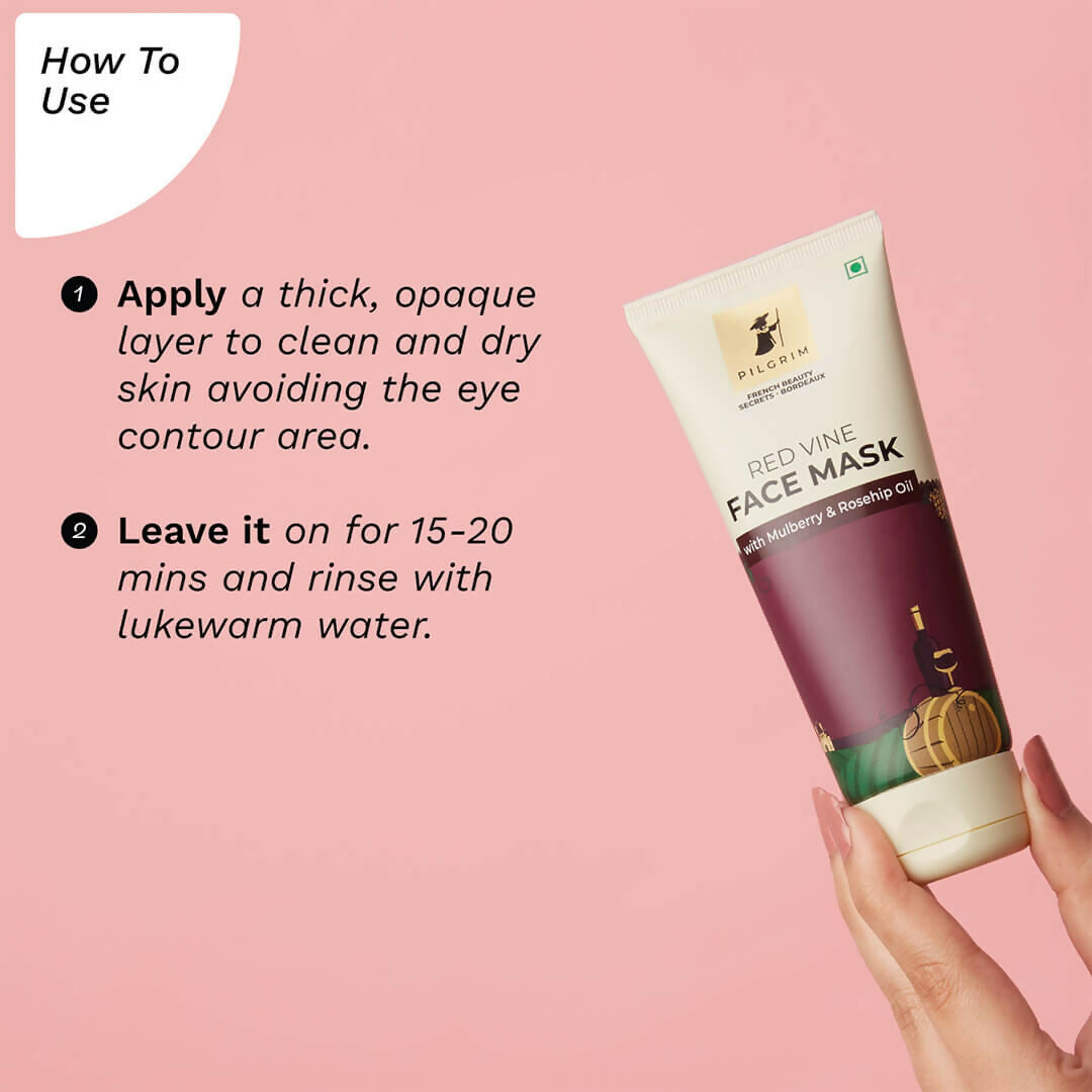 Pilgrim Anti Ageing Red Vine Face Mask with Mulberry Extracts & Rosehip Oil For Glowing Skin, De-Tan, Dark Spots, Blackheads Removal