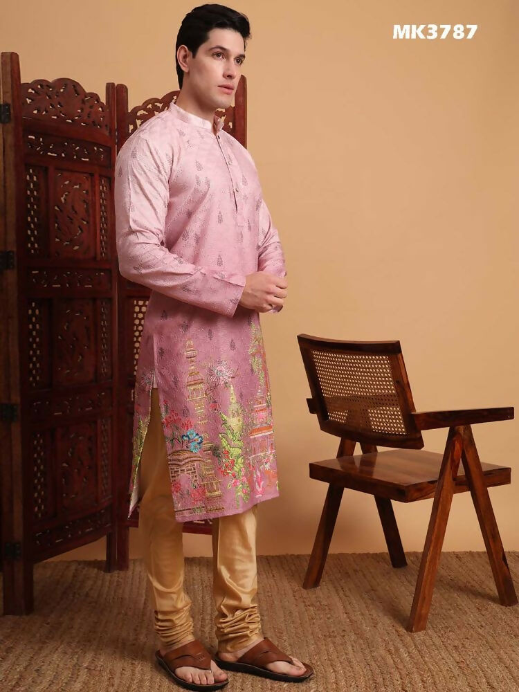 Pink Cotton Printed Chikankari Embroidery Work Kurta - Mahotsav