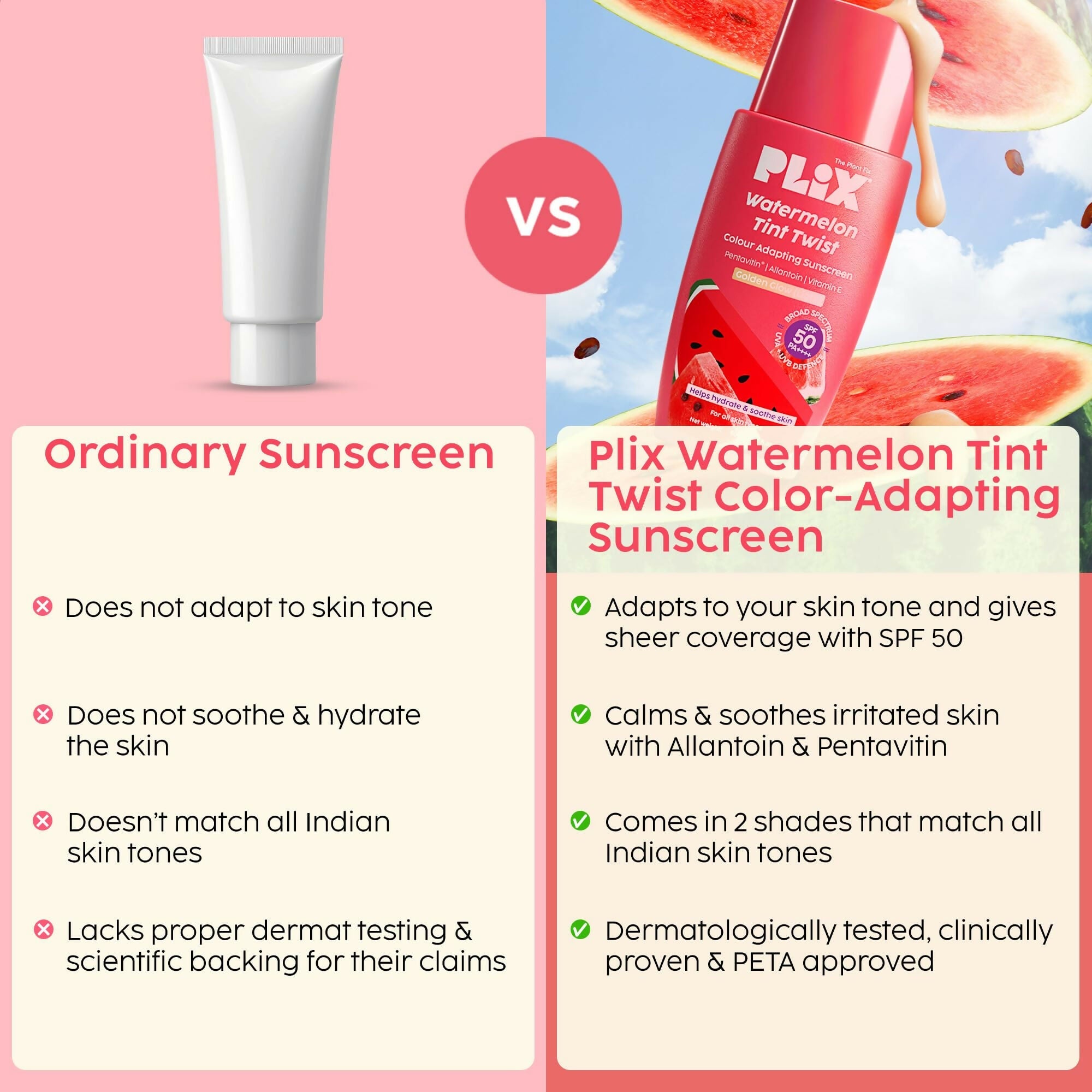 PLIX The Plant Fix Watermelon Tint Twist Color-Adapting Sunscreen For Light Coverage & Instant Glow