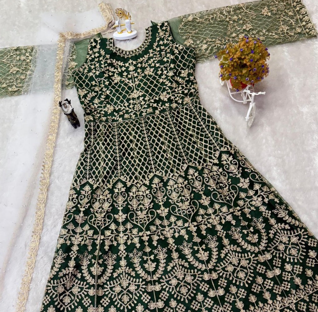 Pramukh Fab Green Color Net Gown