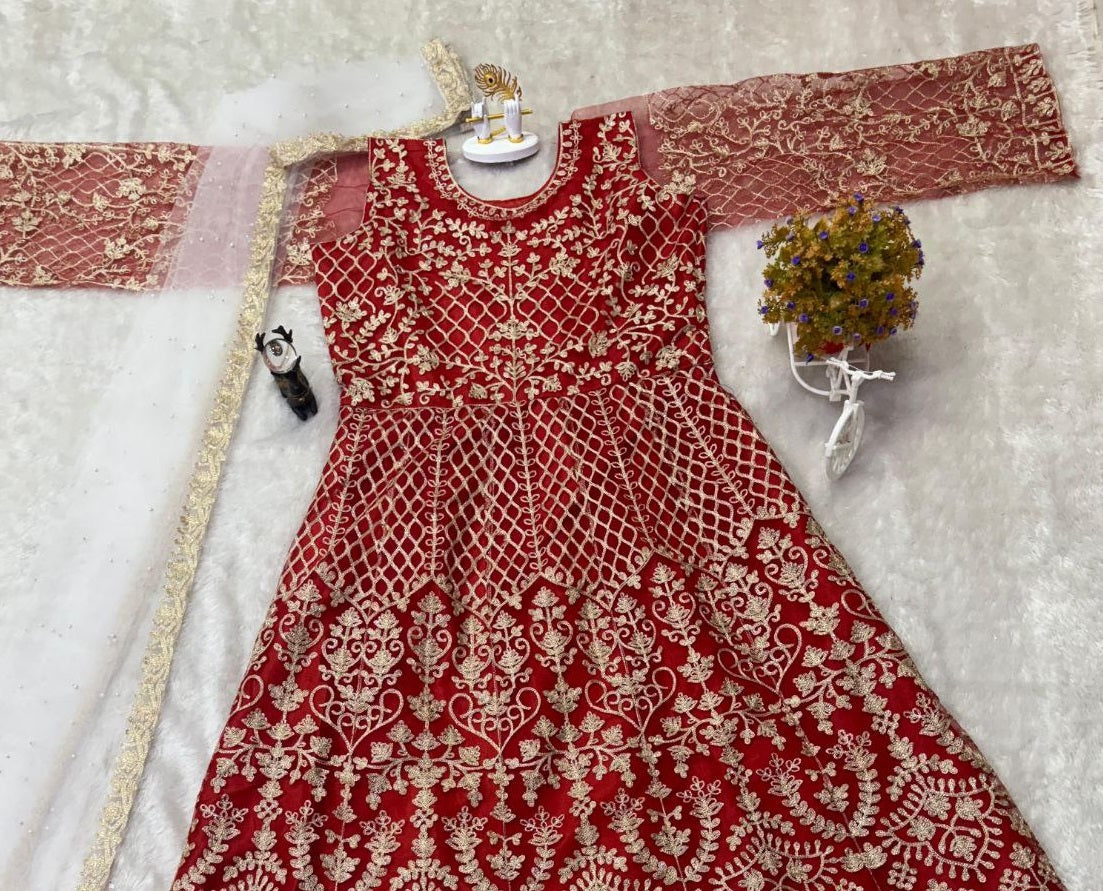 Pramukh Fab Red Color Net Gown