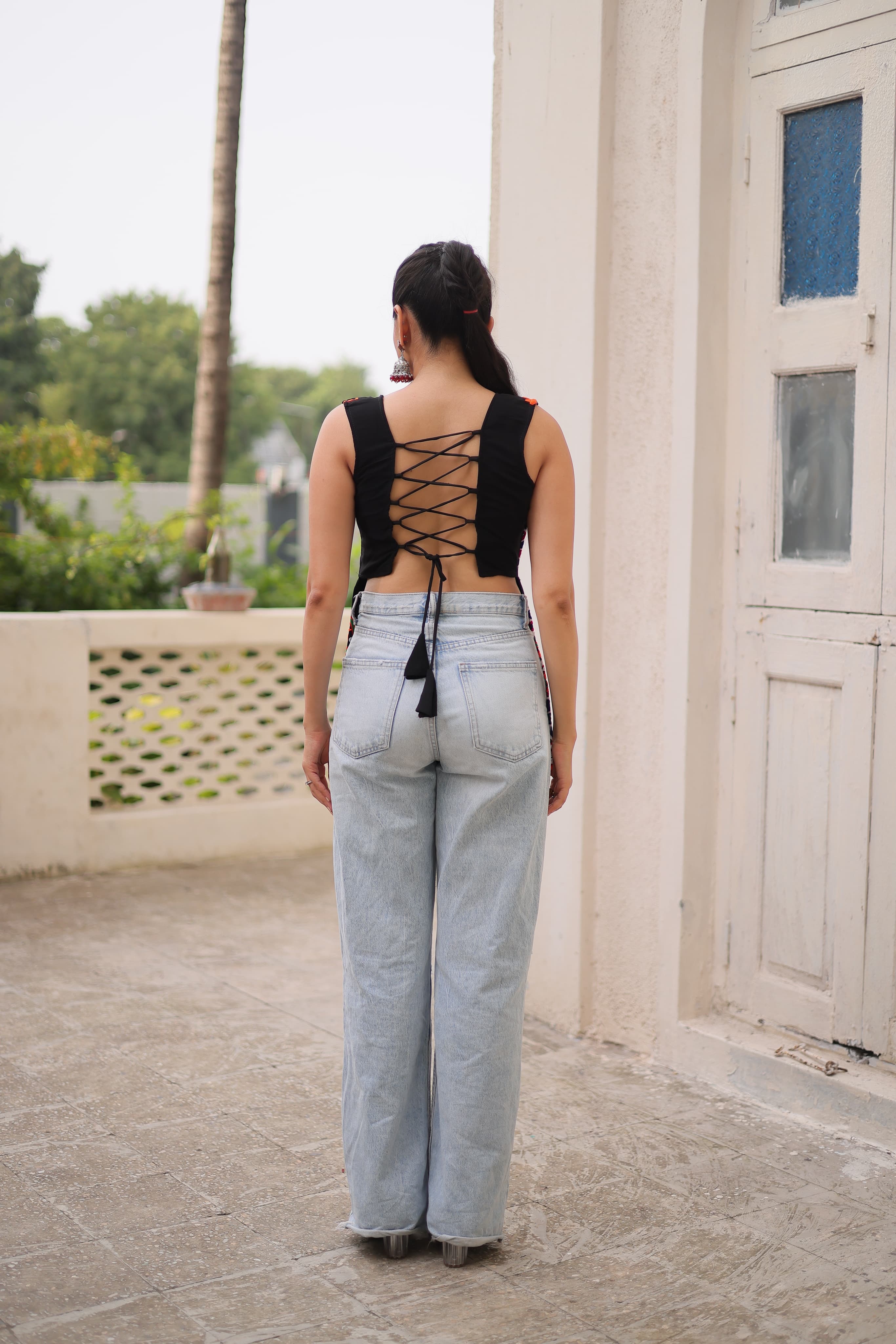Prazu Fashion Black Georgette With Kutchi Gamthi Work Navratri Top