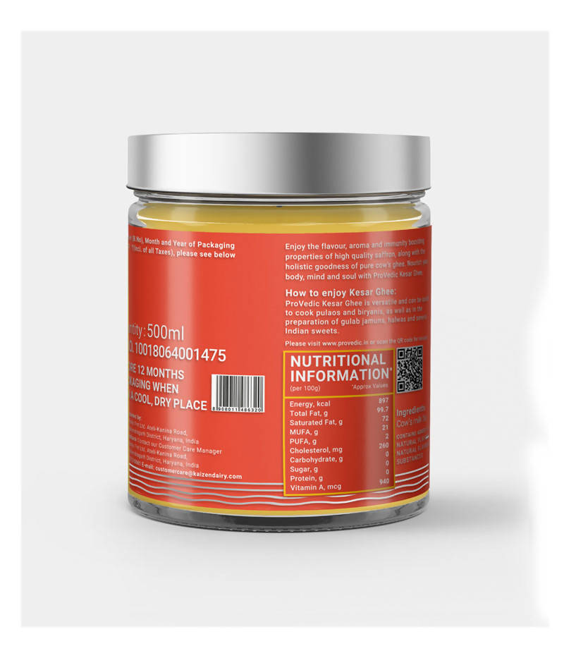 ProVedic Kesar Ghee | Indian Hallikar Cow Ghee, Pure A2 Ghee, Natural & Healthy, Non-GMO | Bilona Method | Traditional Curd-Churned |Pure, Natural & Healthy | Glass Jar |
