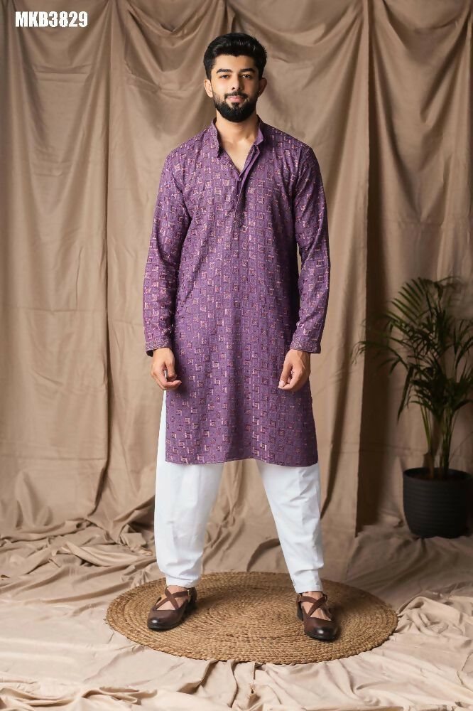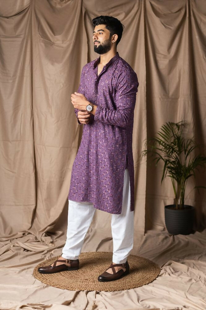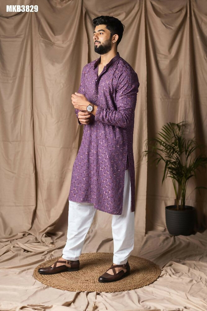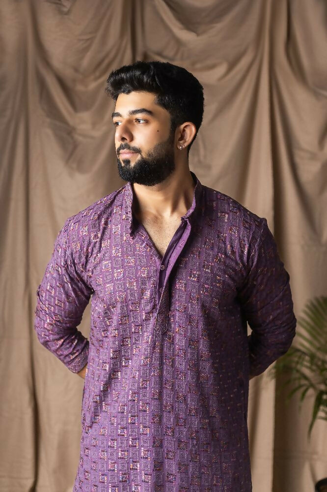 Purple Rayon Thread Embroidery Work Kurta Set - Mahotsav