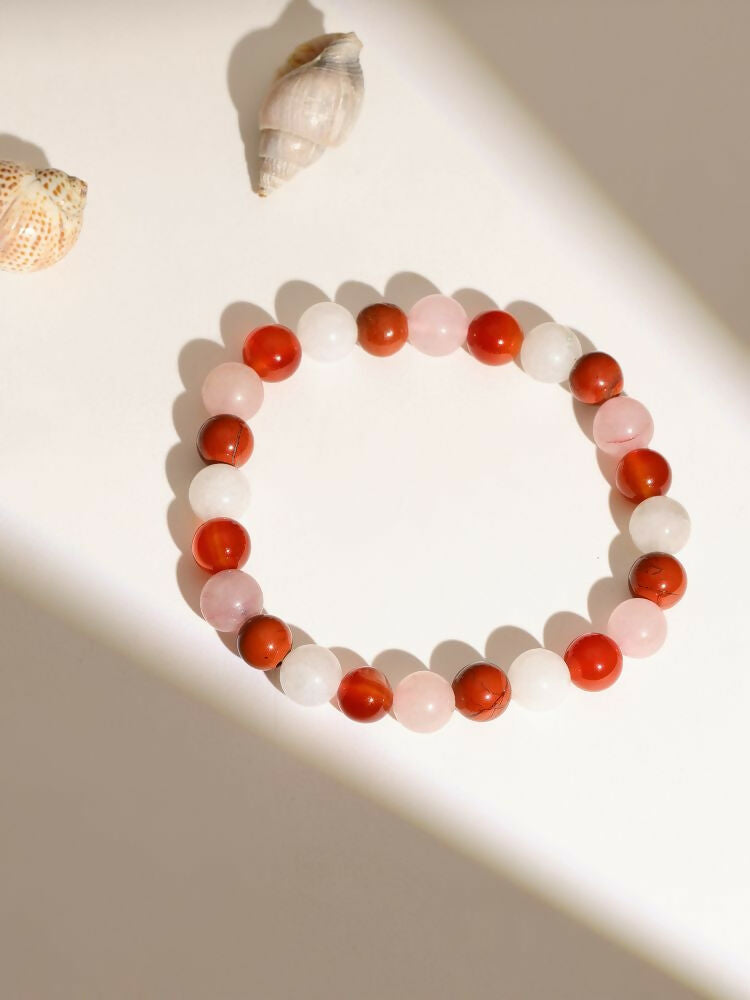 Red Carnelian, Amathyst Beads Bracelet - Ruby Raang