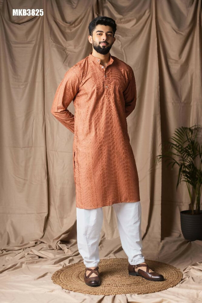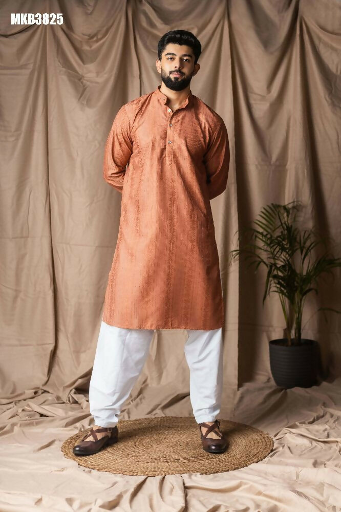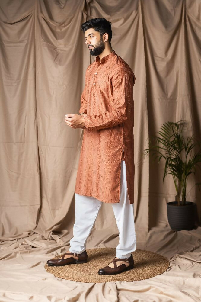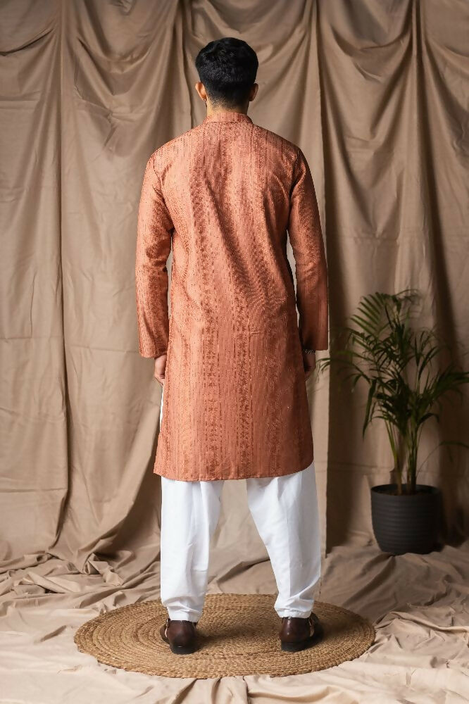 Reddish Orange Rayon Thread Embroidery Work Kurta Set - Mahotsav