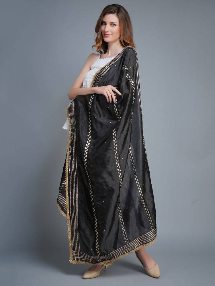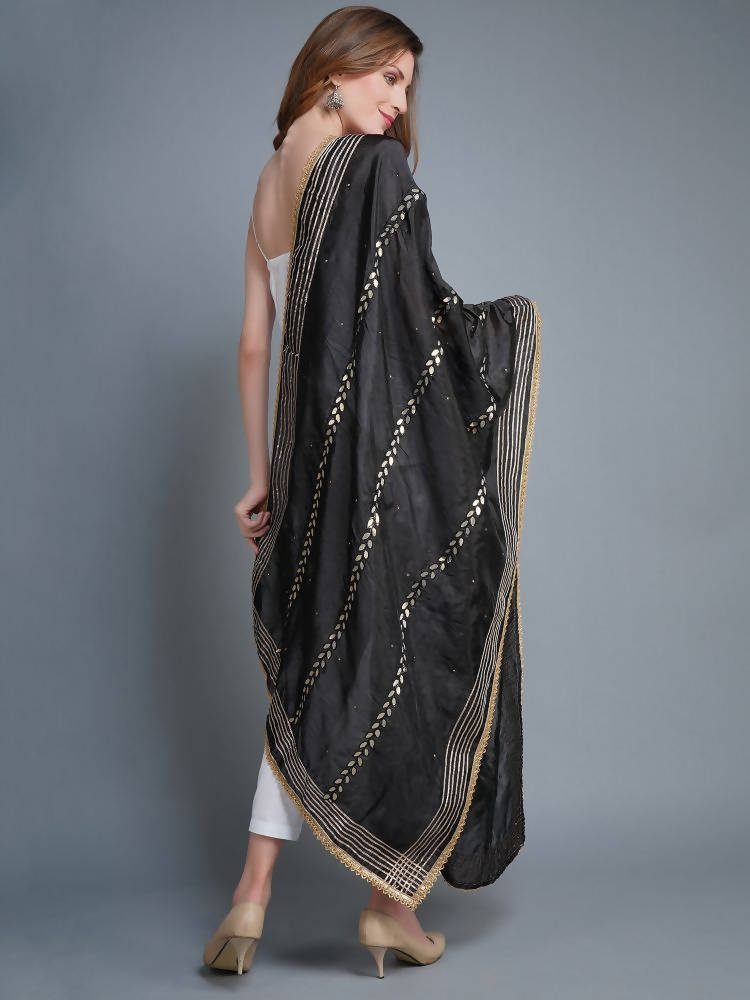 Shehnaai Black Artsilk Dupatta With Sarwoski And Gota Aari Embroidery