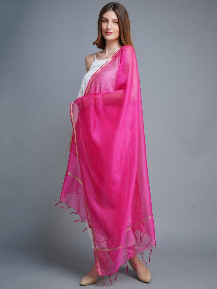 Shehnaai Chanderi Silk Dupatta In Magenta Colour With A Golden Woven Border
