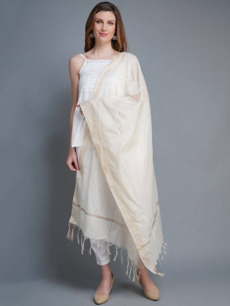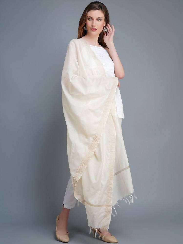 Shehnaai Chanderi Silk Dupatta In Offwhite Colour Golden Border