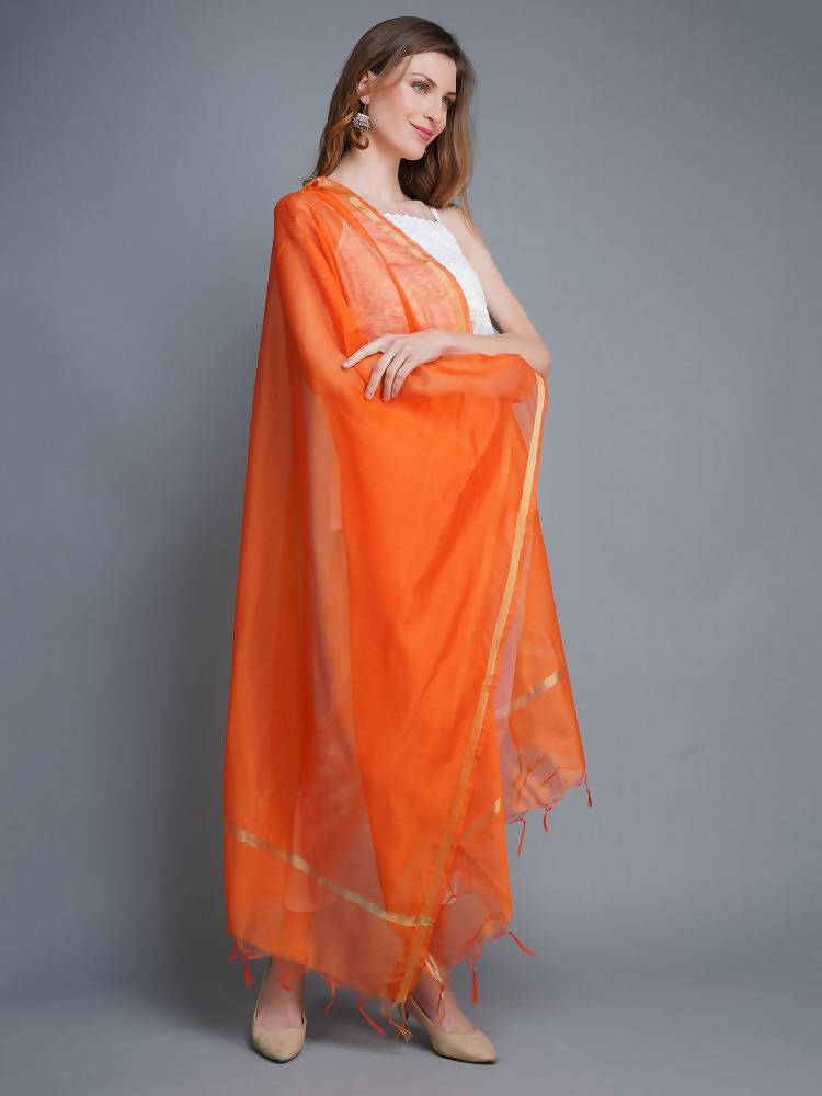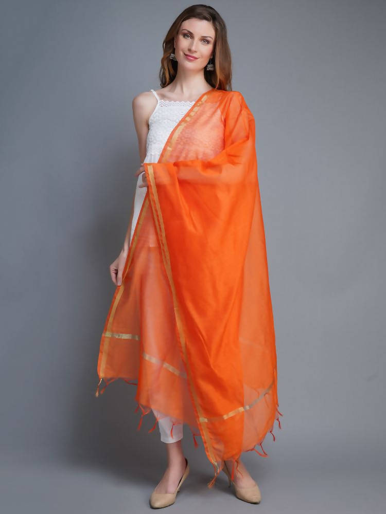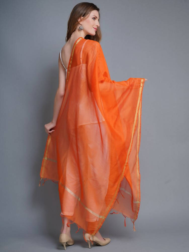 Shehnaai Chanderi Silk Dupatta In Orange Colour With Golden Woven Border