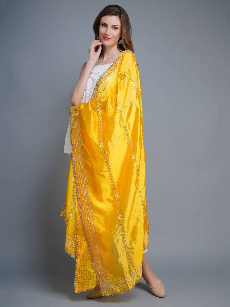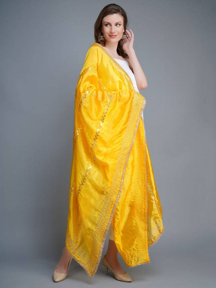 Shehnaai Golden Yellow Artsilk Dupatta With Sarwoski And Gota Aari Embroidery