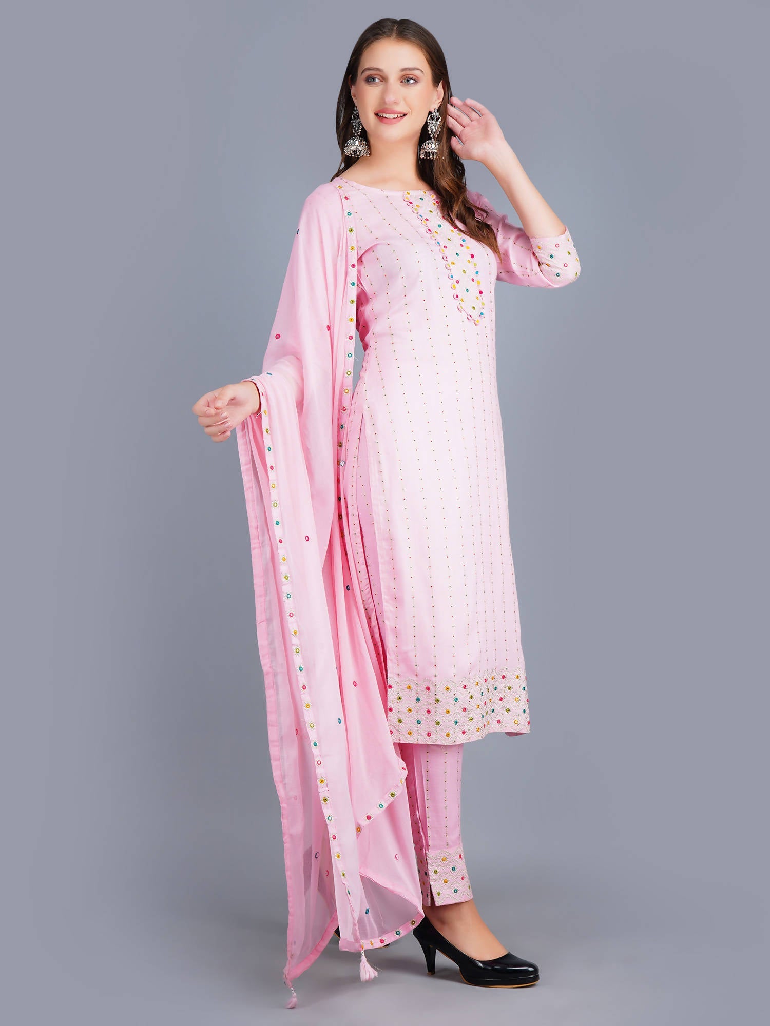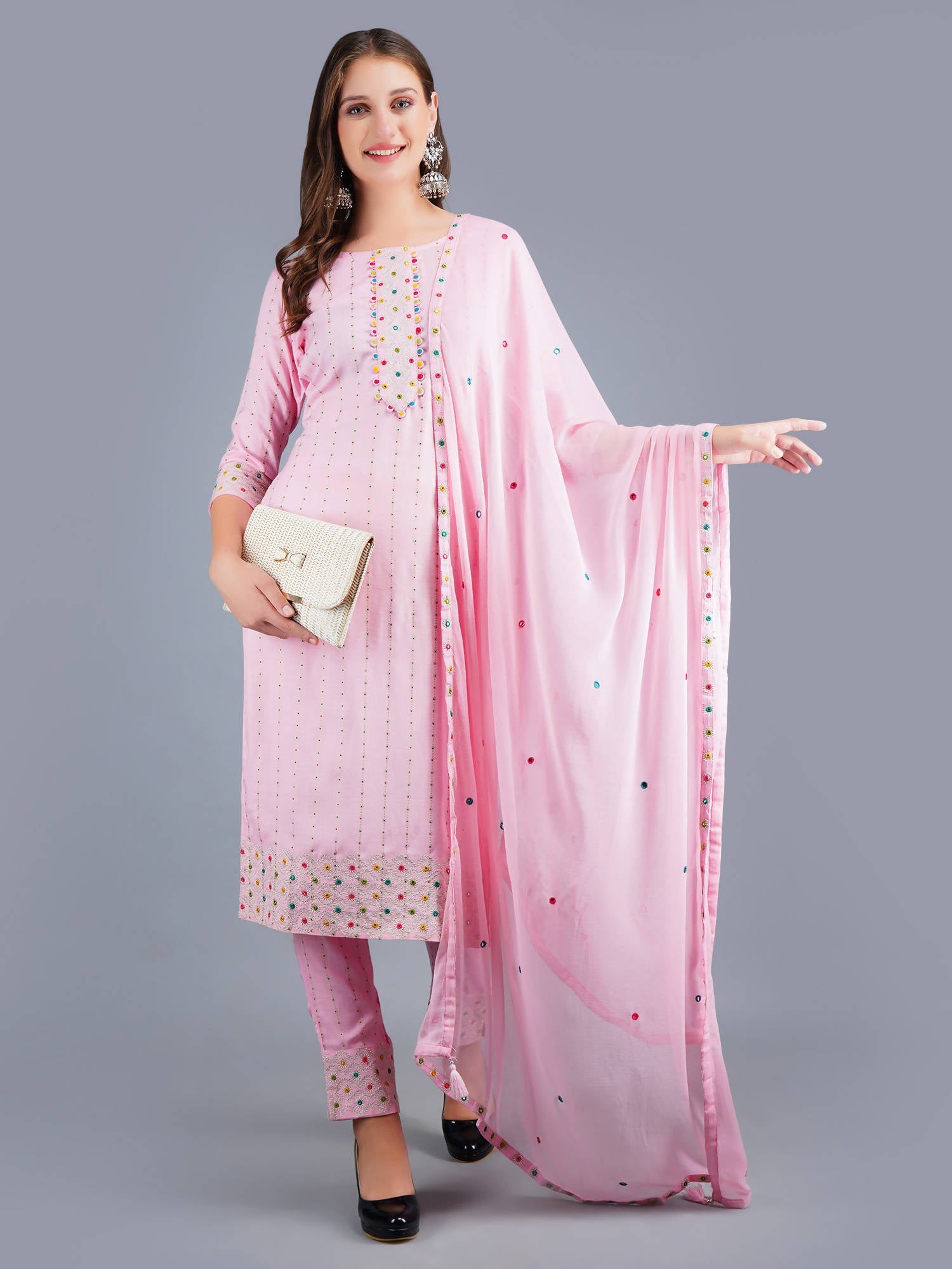 Shehnaai Pink With Gold Dot Print Suit