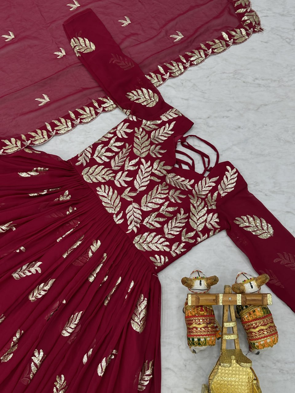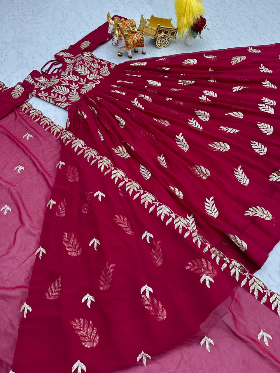 Sonakshi Women's Maharani Fox Georgette Thread Sequins Anarkali Gown Set with Dupatta