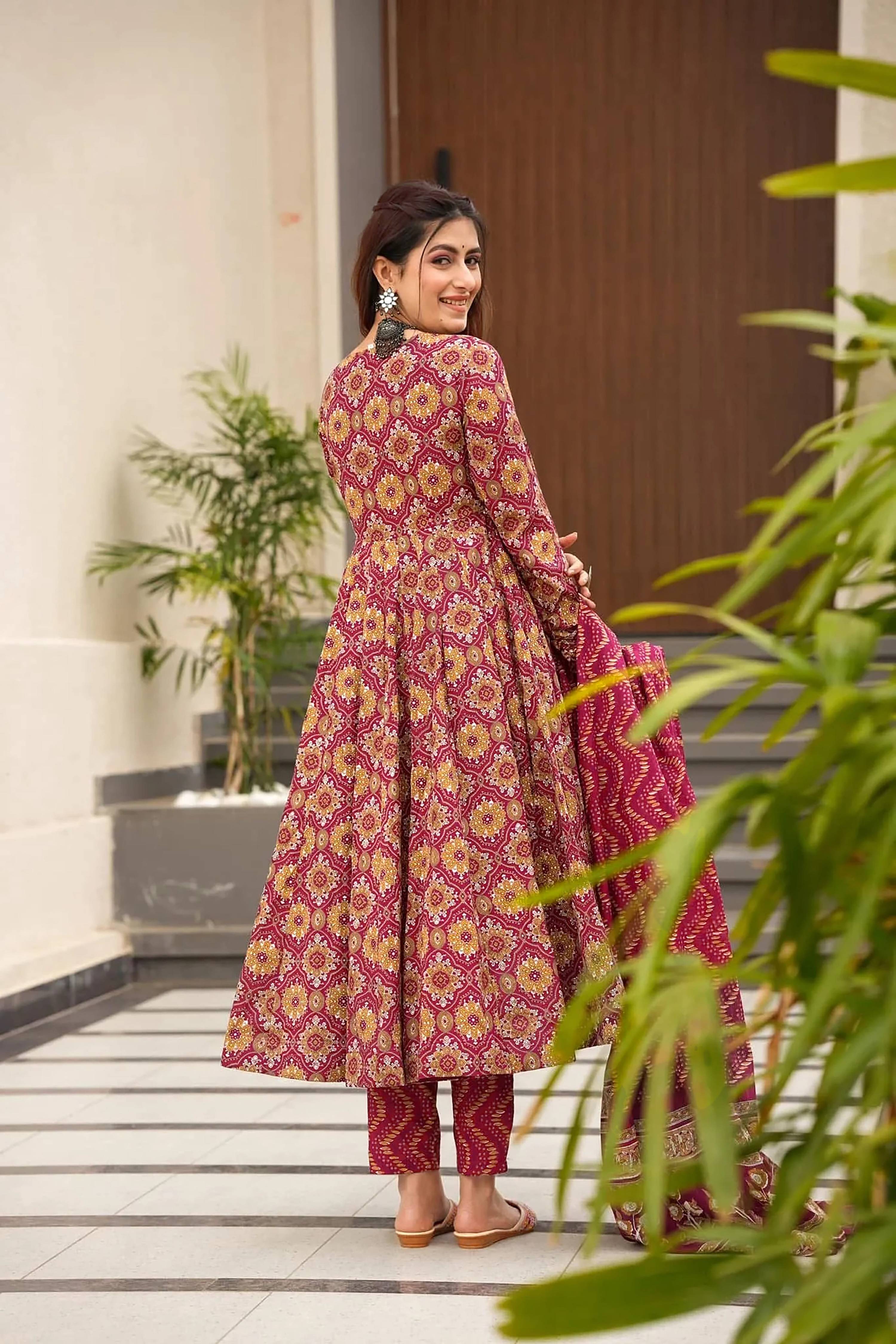 Sonakshi Women's Maharani Maslin Digital Print Full Round Flair Anarkali Gown Set With Dupatta