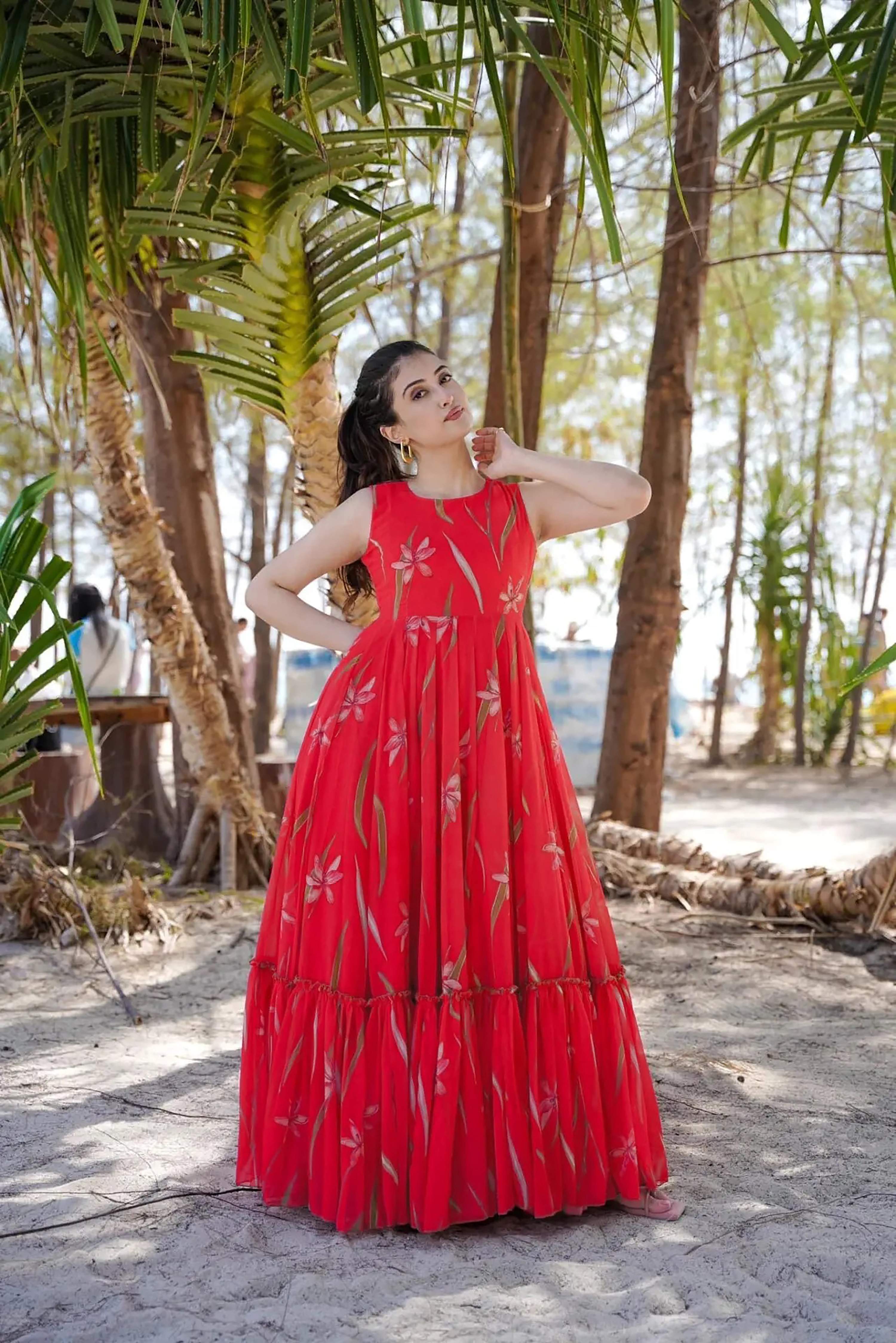 Sonakshi Women's Ranipink Faux Georgette Digital Print Full Round Flair Anarkali Gown Set