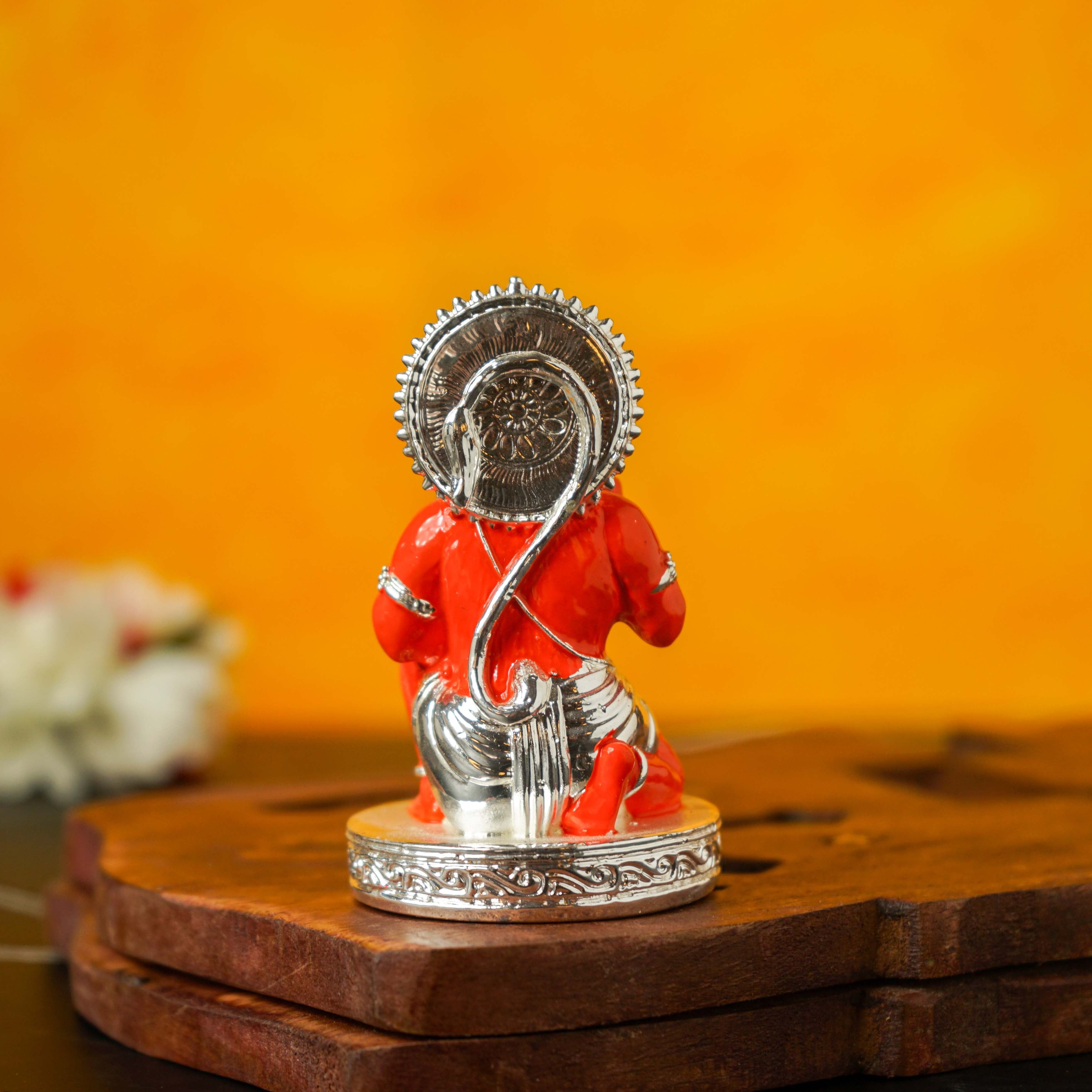 Sri Rudra Hanuman Silver Plated Orange 3 Inch SR03193