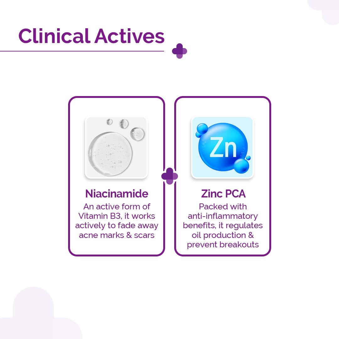 Fades Acne Marks – Niacinamide is an anti-inflammatory that works to regulate the amount of acne-causing oil being produced by the glands in your skin. In addition, it regulates skin tone and helps fade the red, purple, and brown marks that acne can leave on the skin. Niacinamide improves skin’s barrier, repairs past signs of damage, reduces inflammation, which results in fewer pimples.
