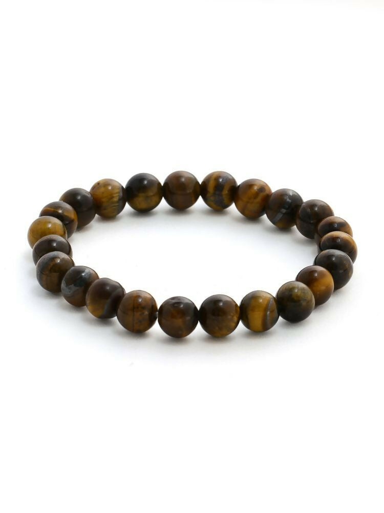 Tiger Eye Brown and Black Round crystal Beads Elastic Bracelet - Ruby Raang