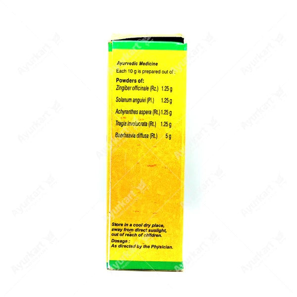 Vaidyaratnam Ardhavilwam Kashaya Choornam is an Ayurvedic formulation. This herbal decoction may be useful in reducing swelling and pain.